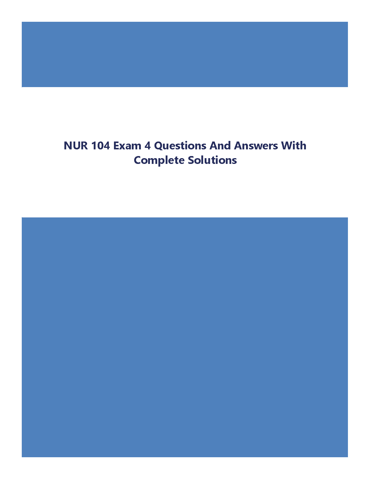 Ace your NUR 104 Exam 4 with this comprehensive guide featuring questions and answers with complete solutions. This resource is designed to help students pass t...