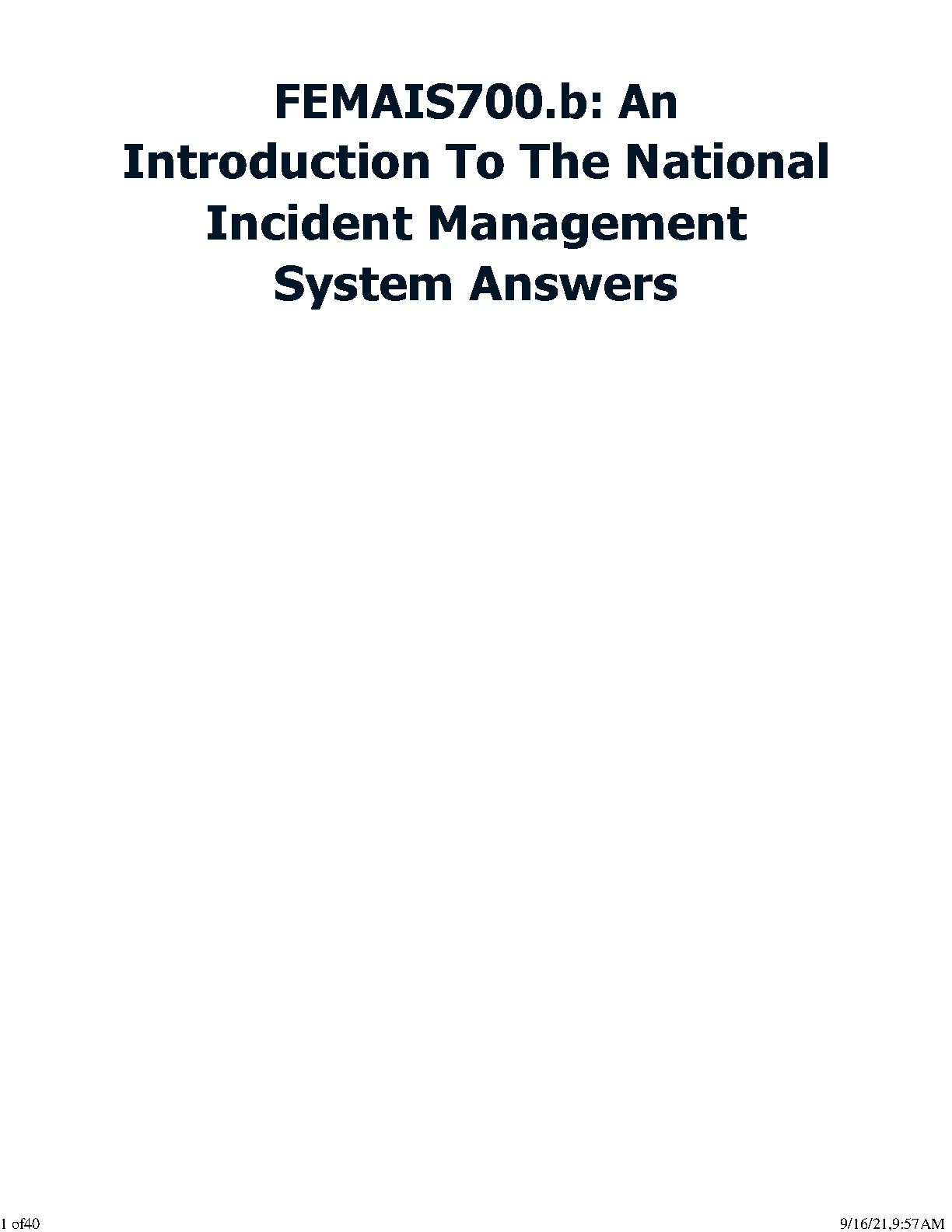 Ace your FEMA IS 700.b exam on the first try with this comprehensive guide. This resource provides complete answers to help you master the National Incident Management System (NIMS). Designed for the 2024/2025 academic year, it's your key to success and avoiding resits.