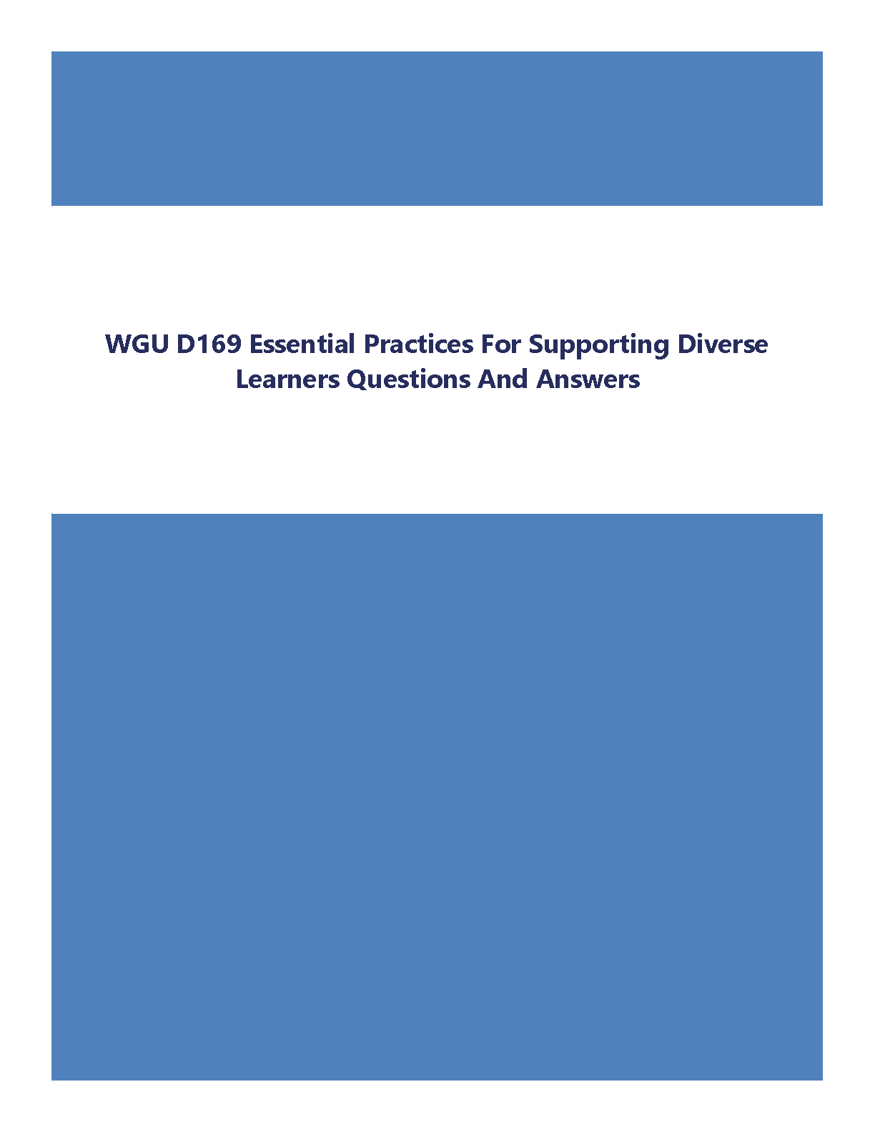 WGU D169 Essential Practices for Supporting Diverse Learners Questions and Answers - 2024/2025 Edition