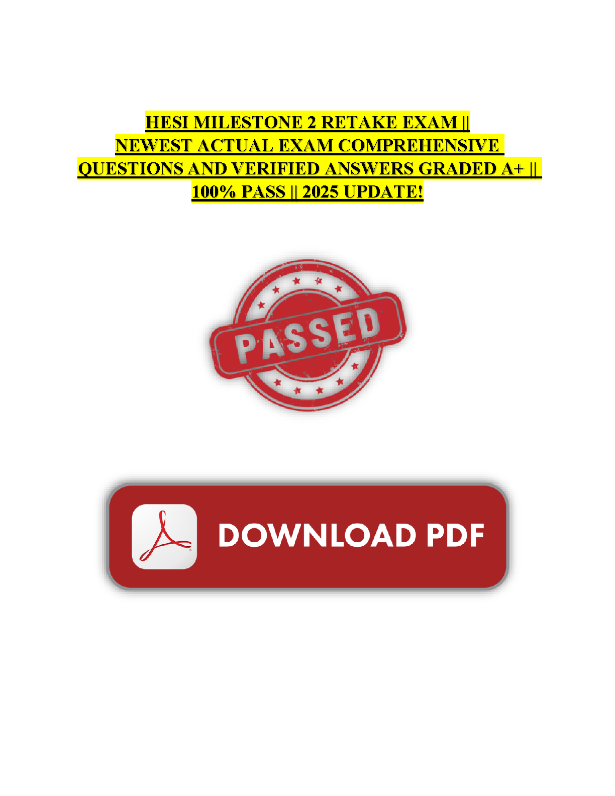 HESI Milestone 2 Retake Exam 2025 Update: Newest Actual Exam Questions and Verified Answers