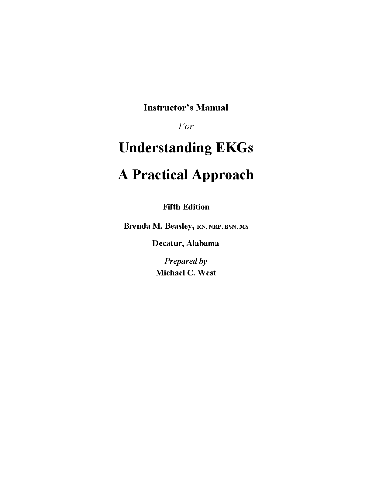 Instructor's Manual for Understanding EKGs: A Practical Approach, 5th Edition by Brenda M. Beasley and Michael C. West