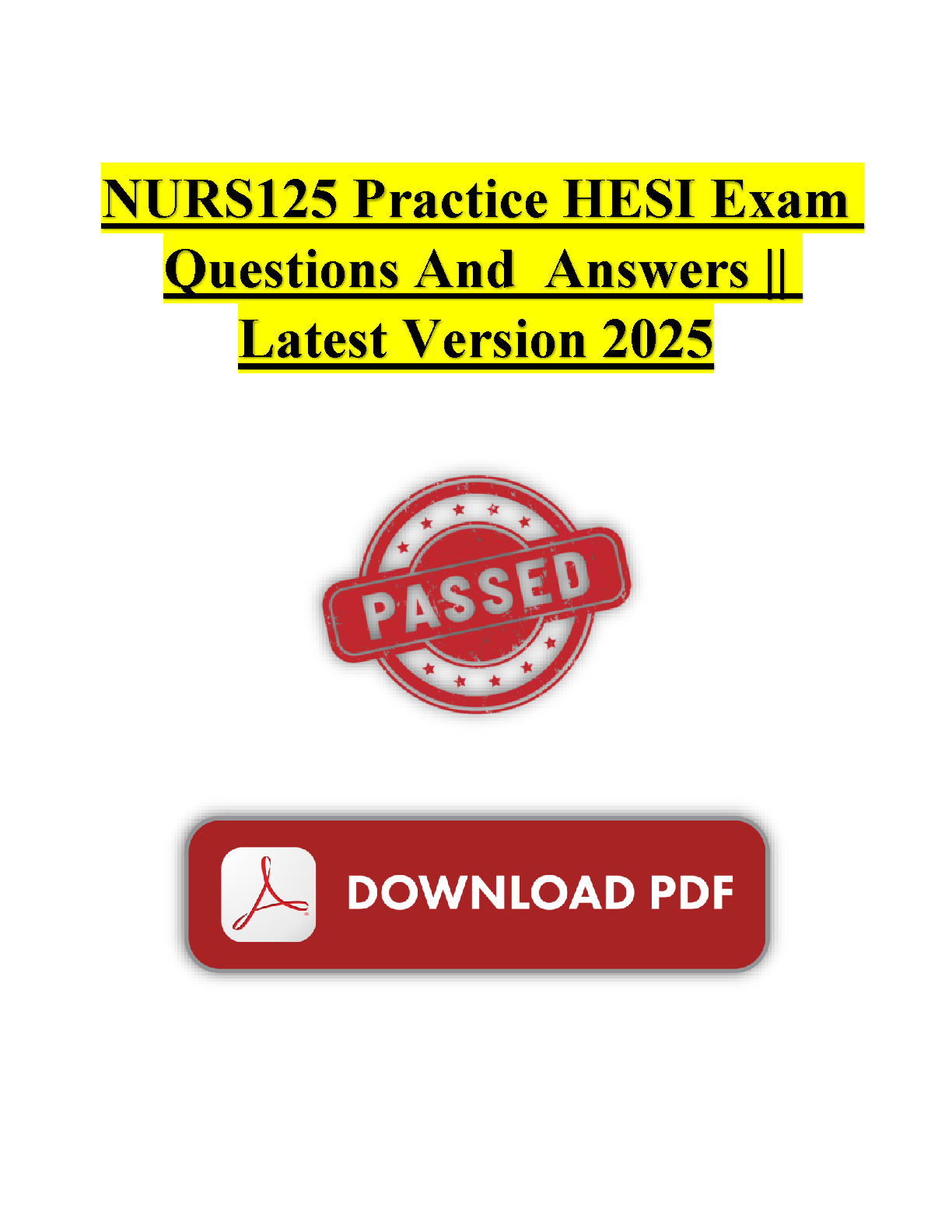NURS125 Practice HESI Exam Questions and Answers 2025 Edition: Ace Your Exam with the Latest Version