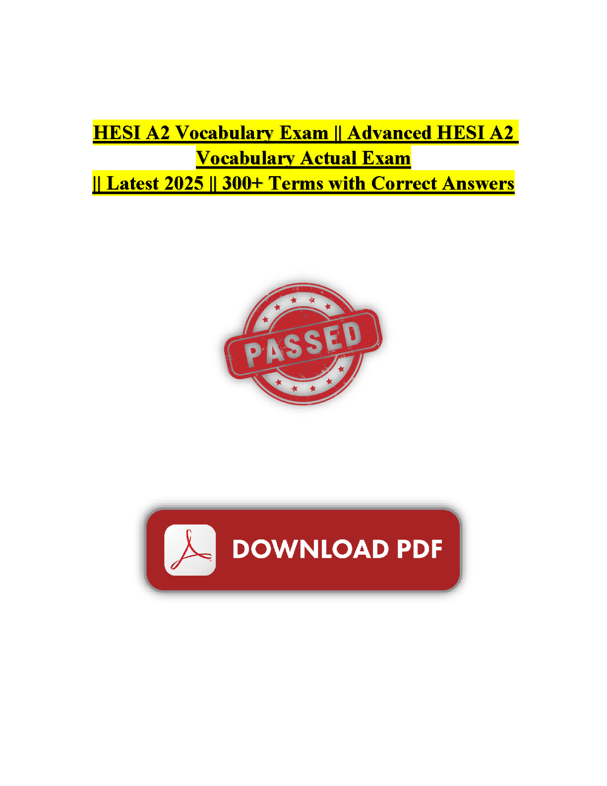 2025 HESI A2 Vocabulary Exam: 300+ Terms with Correct Answers for First-Attempt Success
