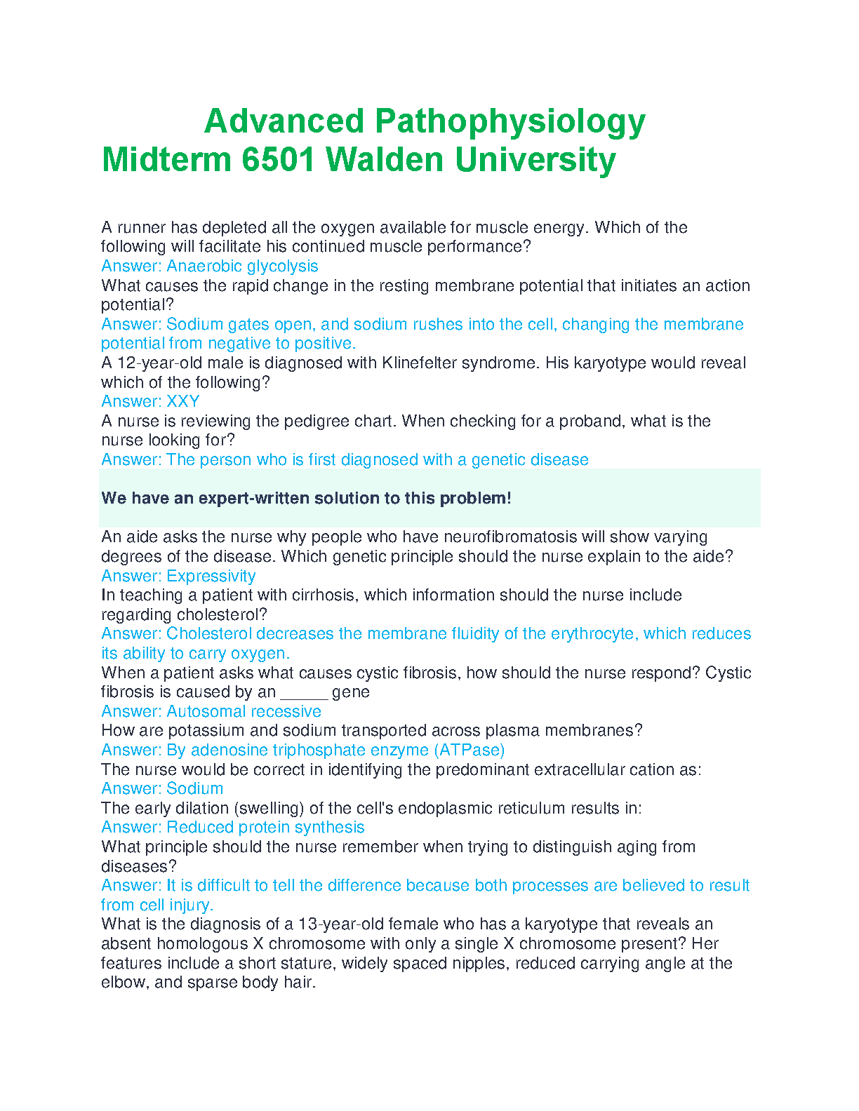 Ace your Walden University Advanced Pathophysiology Midterm Exam (6501) on your first try! This comprehensive guide provides expert-written solutions to challen...