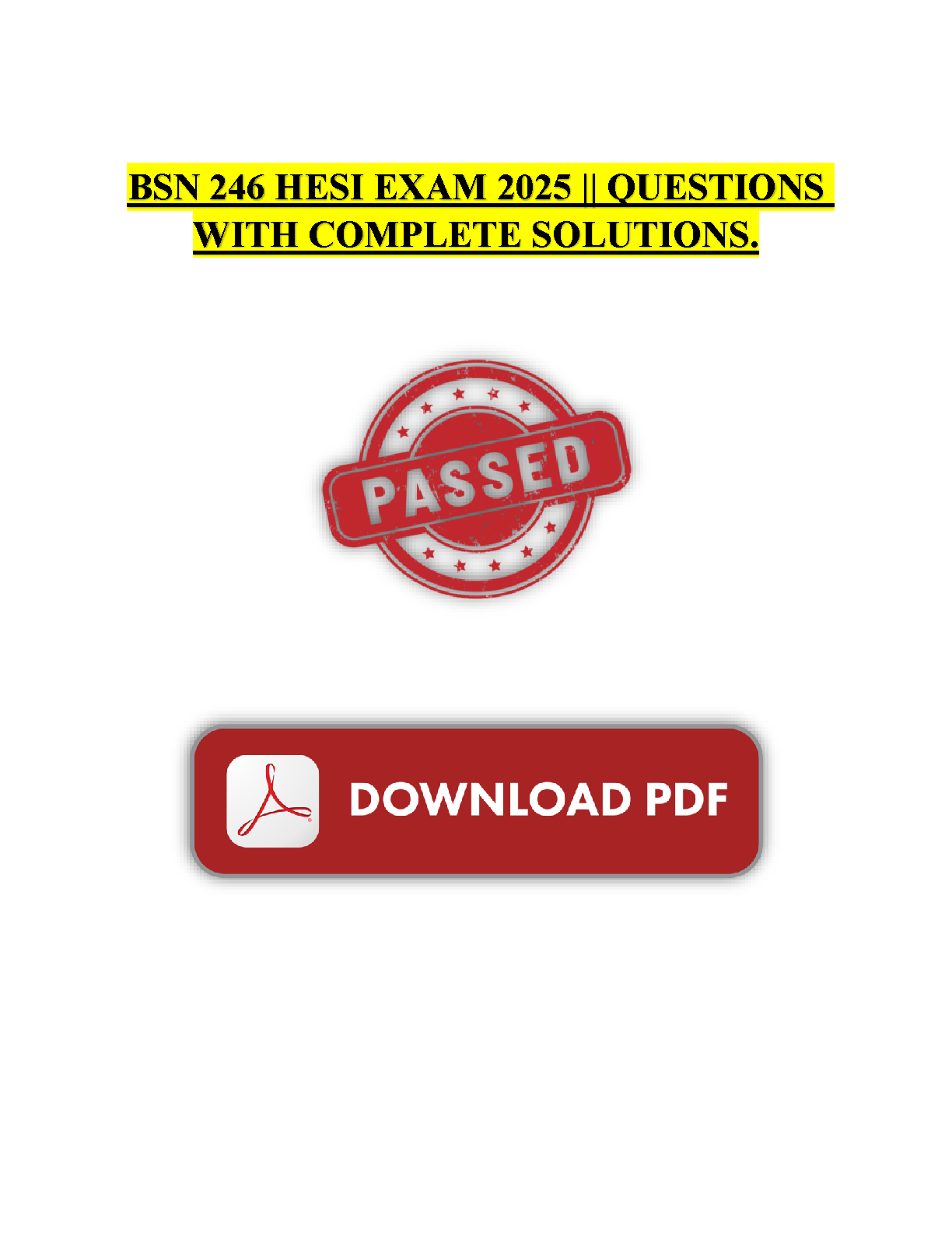 BSN 246 HESI Exam 2025: Questions with Complete Solutions - Ace Your Exam!