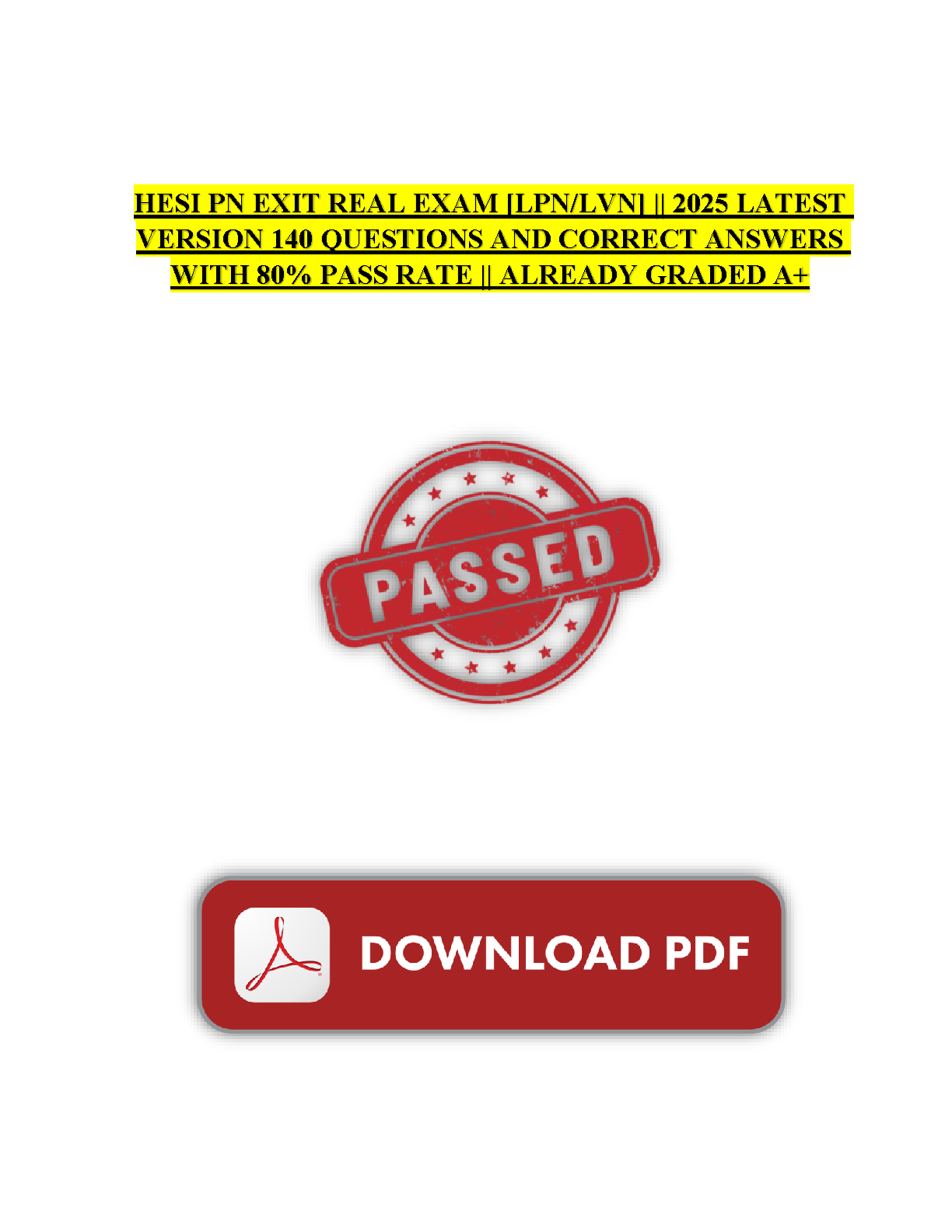 Ace your HESI PN Exit exam with this latest 2025 version featuring 140 questions and their correct answers. This comprehensive study resource boasts an 80% pass rate and is already graded A+. Ensure first-attempt success and avoid costly resits. Download now!
