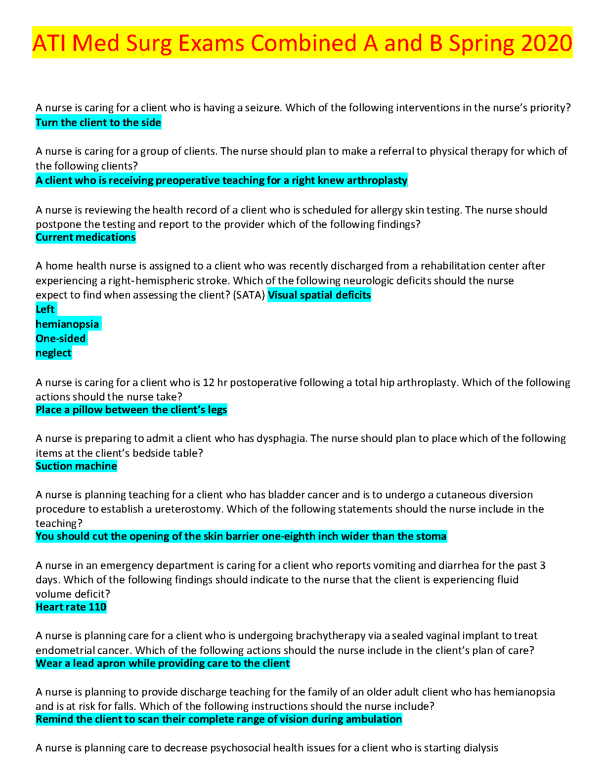 ATI Med-Surg Exams Combined A and B Spring 2020: Comprehensive Review for Success