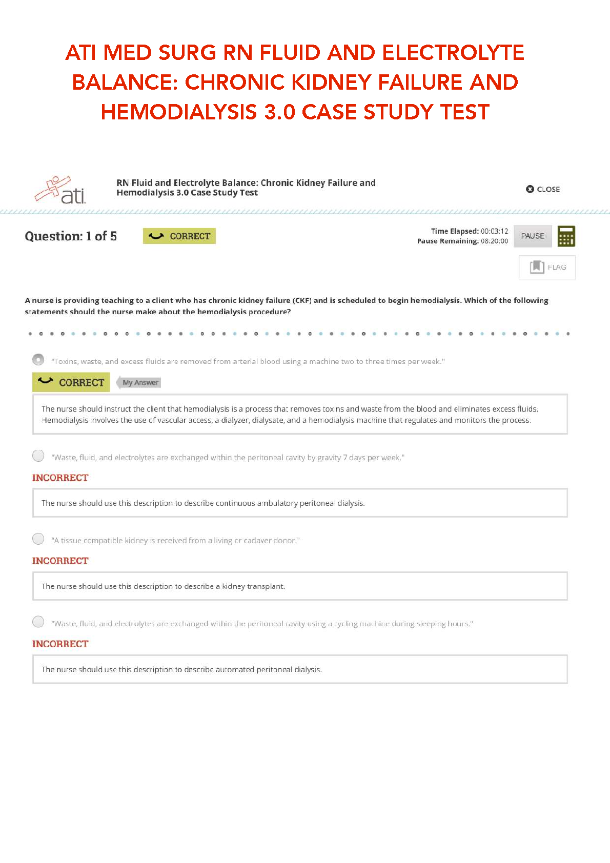 Prepare for your ATI Med Surg RN exam with this comprehensive case study test focusing on fluid and electrolyte balance in chronic kidney failure and hemodialysis. This resource is designed to help students master the material and pass their exams on the first attempt, avoiding resits. The 3.0 edition covers the latest updates to the curriculum.