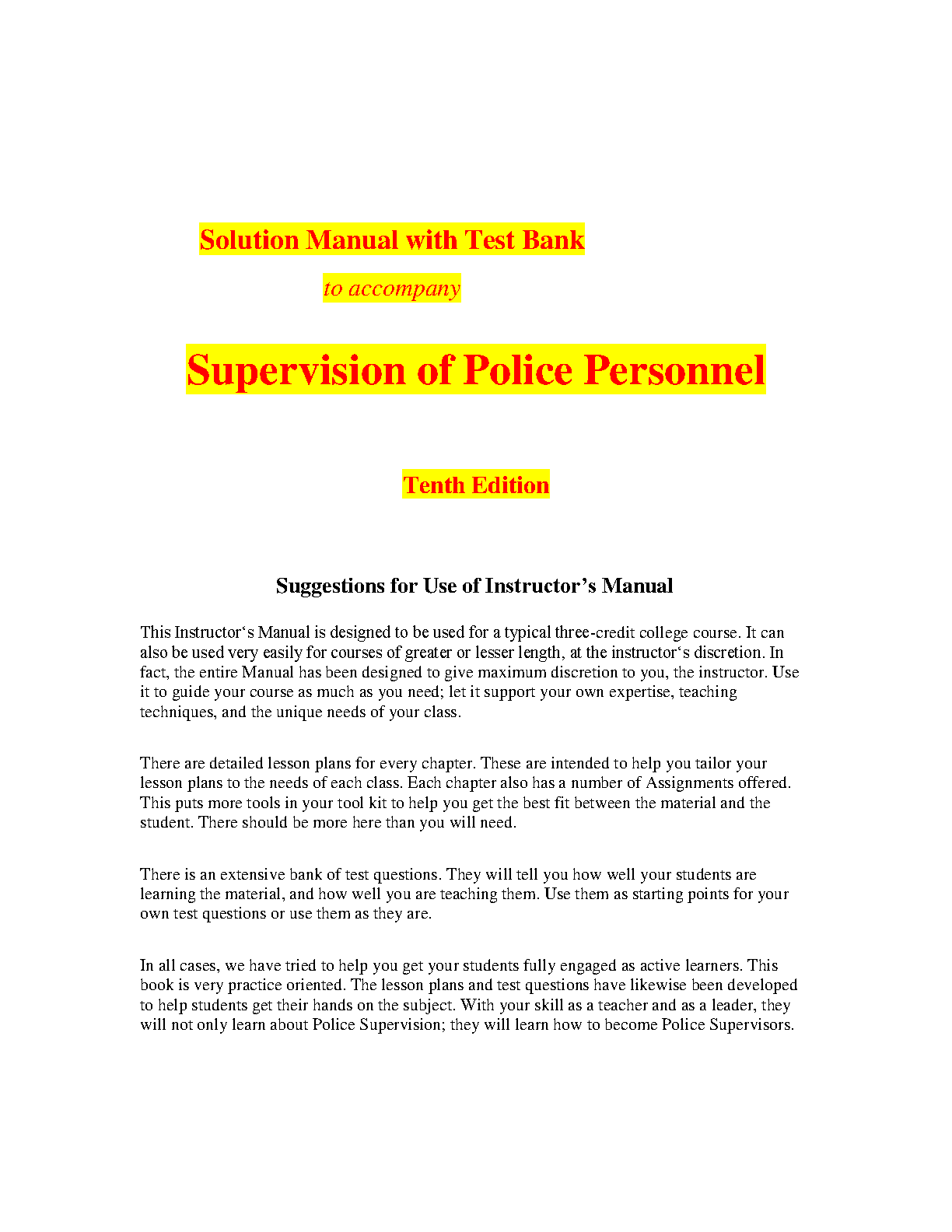 Supervision of Police Personnel: Tenth Edition - Solution Manual & Test Bank by (Author Names)