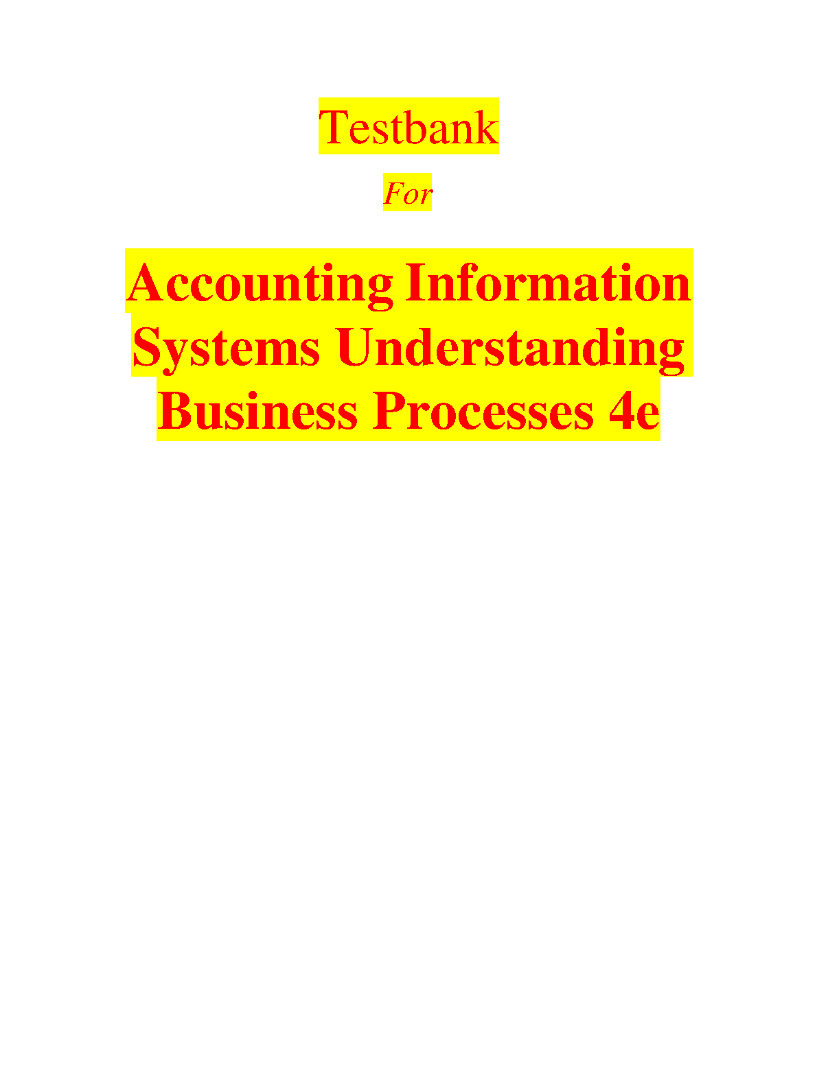 Test Bank for Accounting Information Systems: Understanding Business Processes, 4e by Romney, Steinbart, and Edwards