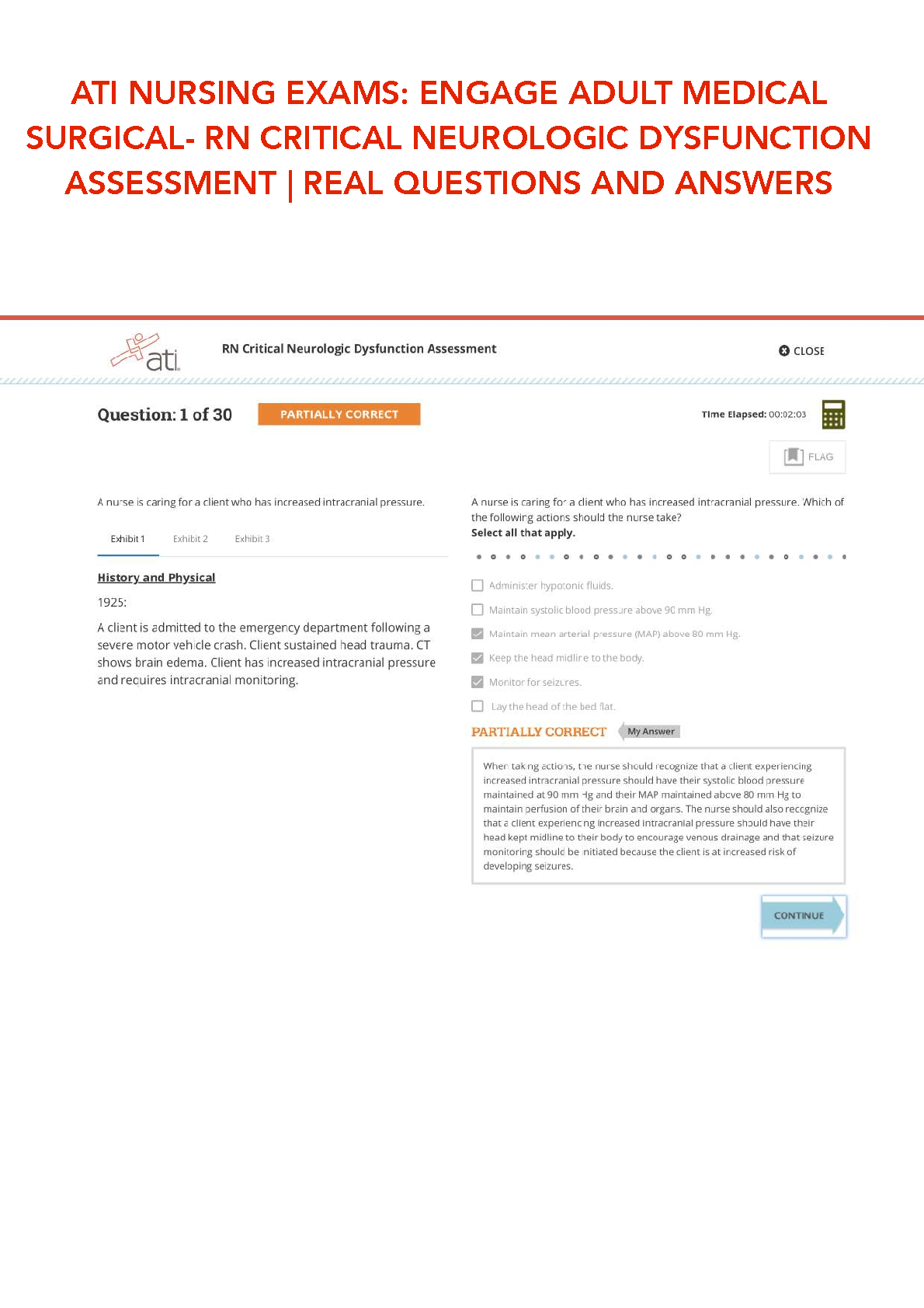 ATI Nursing Exams: Engage Adult Medical Surgical- RN Critical Neurologic Dysfunction Assessment 2024-2025 Edition - Real Questions and Answers for NCLEX Success
