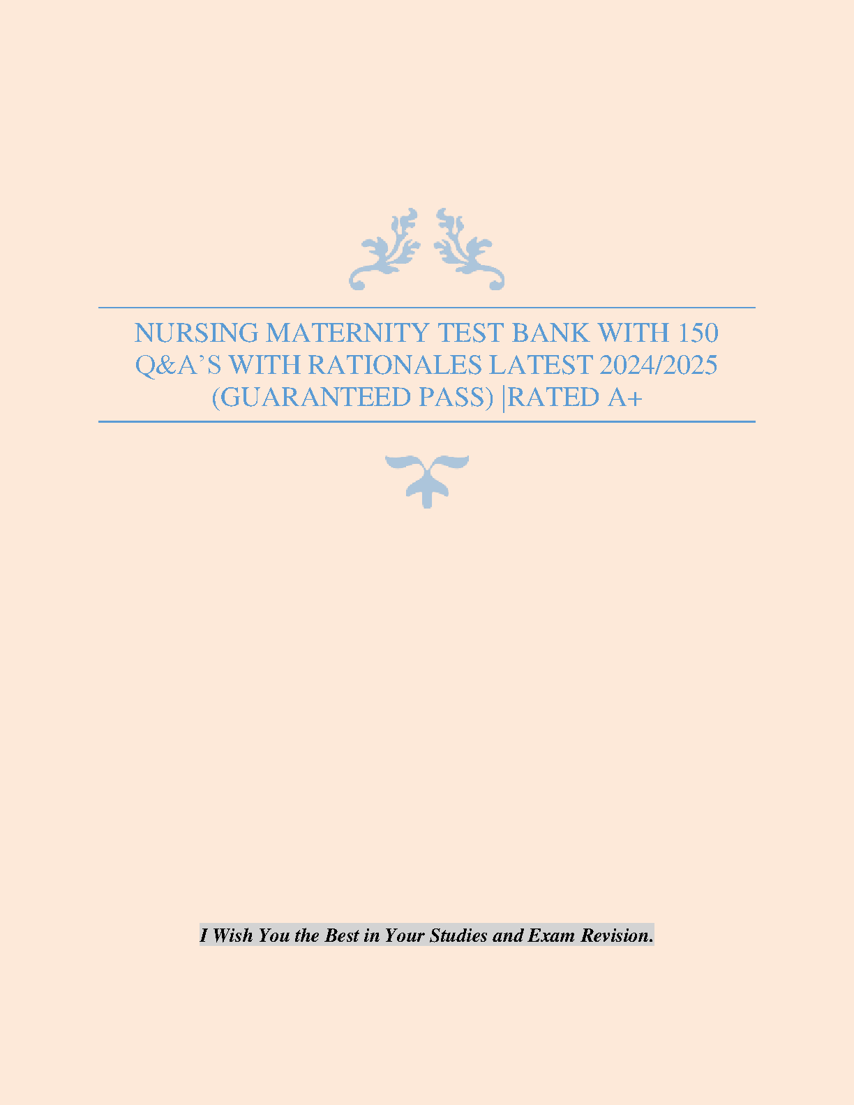 Nursing Maternity Test Bank with 150 Q&As and Rationales (2024/2025 Edition) - Guaranteed Pass!