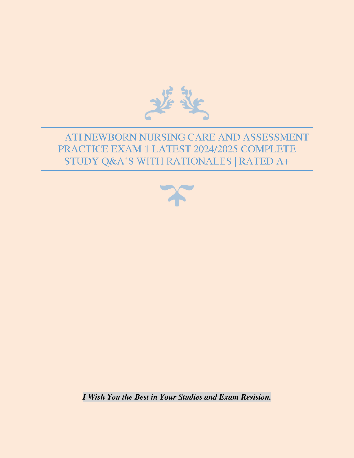 ATI Newborn Nursing Care and Assessment Practice Exam 2024-2025: Complete Study Q&A's with Rationales (Rated A+)