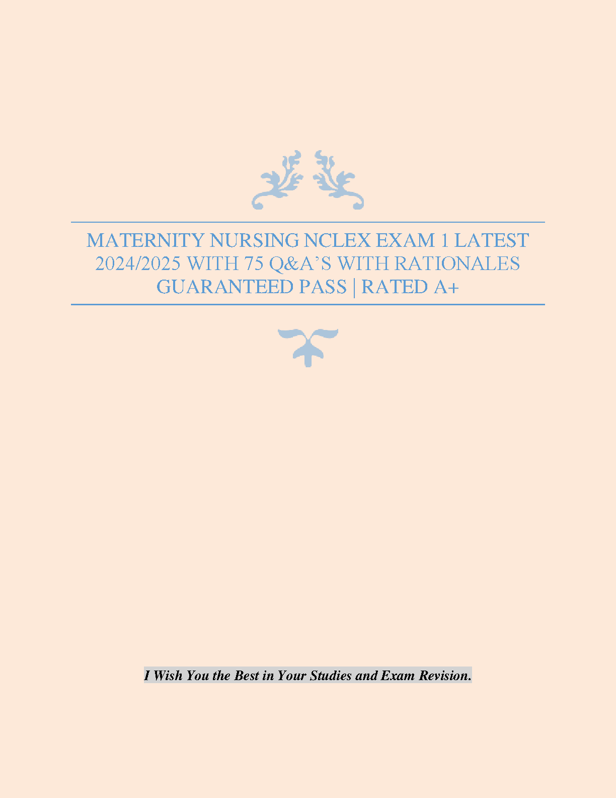 Ace your Maternity Nursing NCLEX-RN Exam 1 with this comprehensive study guide! This 2024/2025 edition features 75 questions with detailed rationales, ensuring a thorough understanding of the material and boosting your confidence for exam success. Avoid resits and pass on your first attempt.