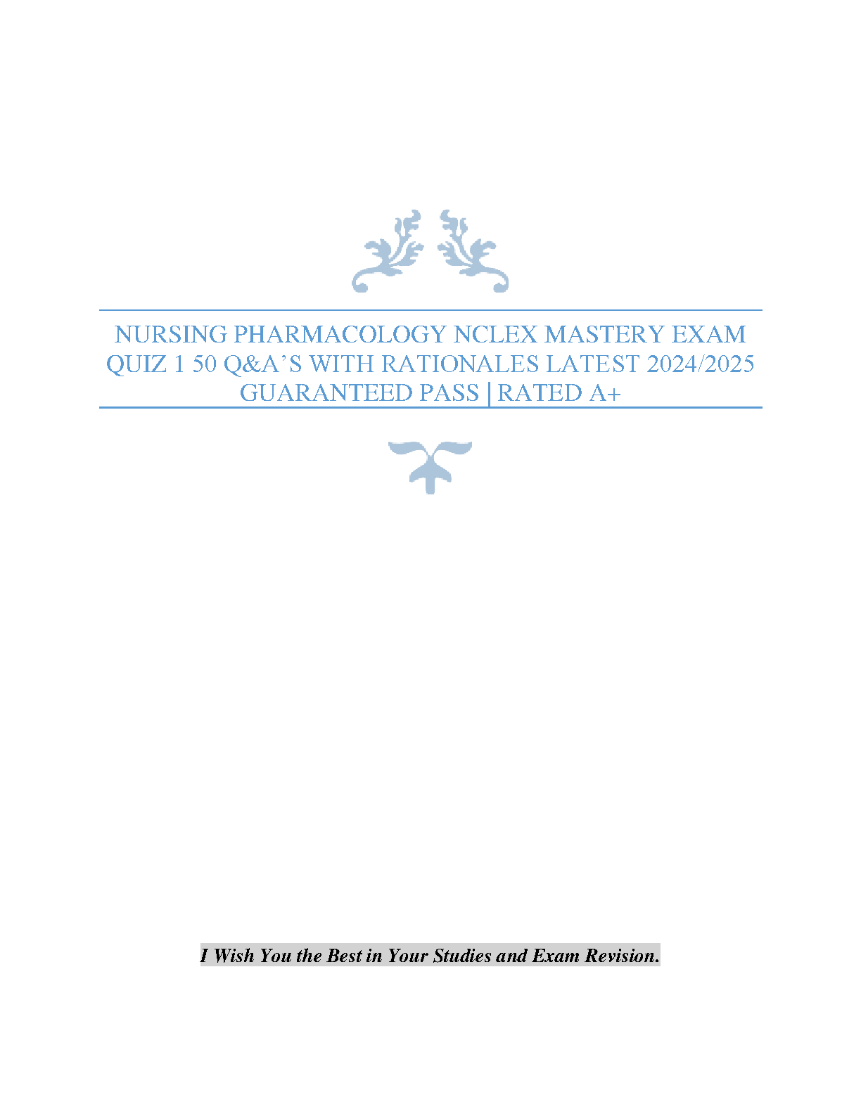2024/2025 Nursing Pharmacology NCLEX Mastery Exam Quiz 1: 50 Q&As with Rationales for Guaranteed Pass