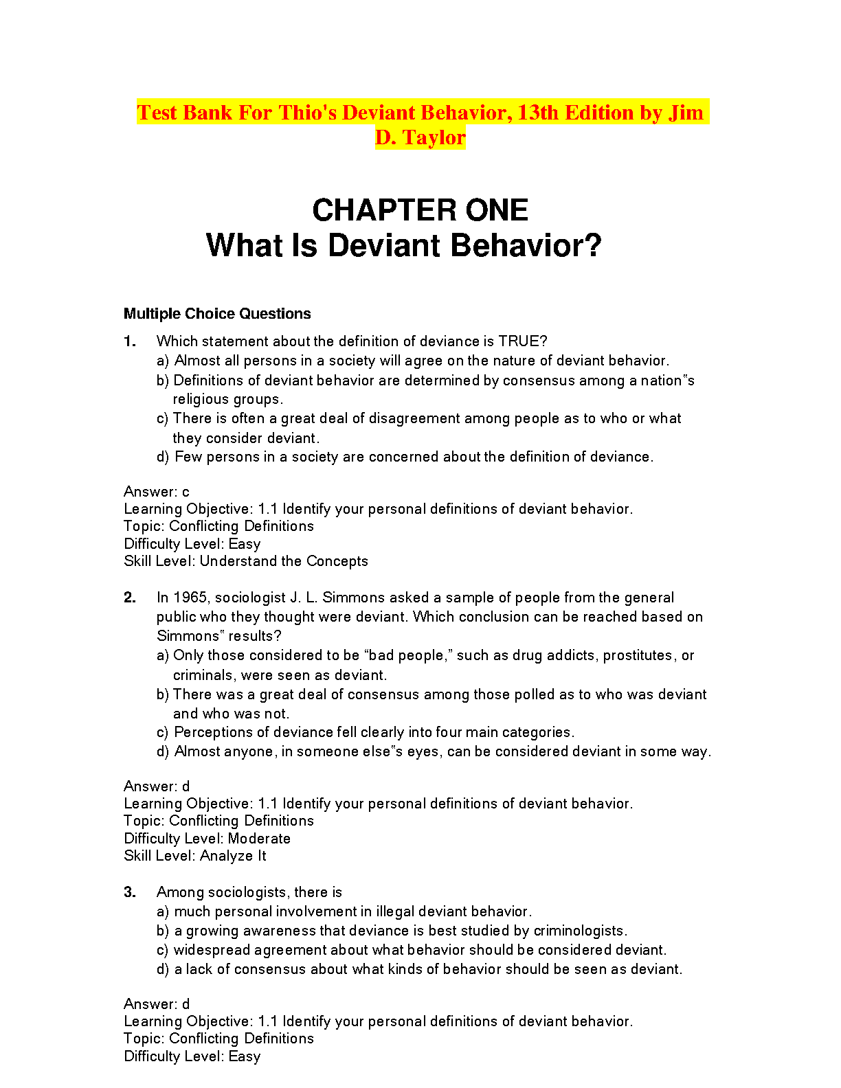 Ace your Deviant Behavior exam with this meticulously crafted test bank for Thio's Deviant Behavior, 13th Edition, by Jim D. Taylor. This resource offers a wide...