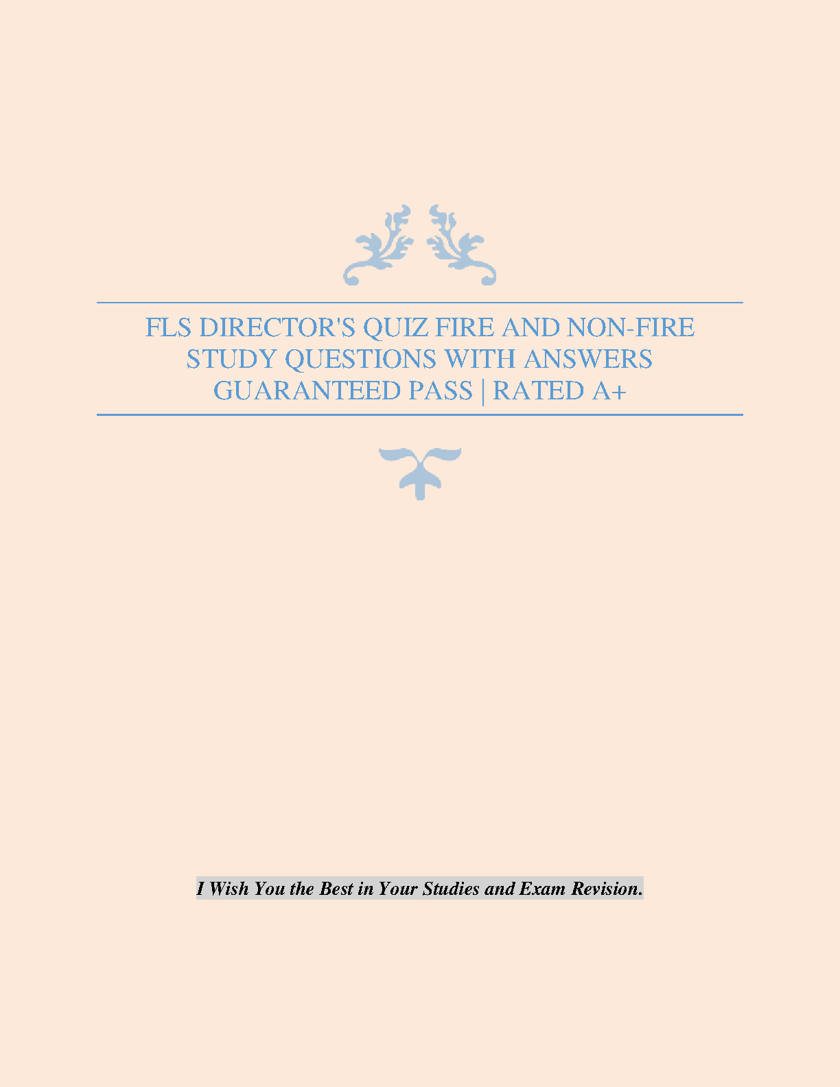 Ace your FLS Director's exam with this comprehensive study guide. This resource includes a curated set of fire and non-fire study questions with answers, designed to ensure a guaranteed A+ pass. Prepare effectively and confidently for exam success on your first attempt, eliminating the need for resits.