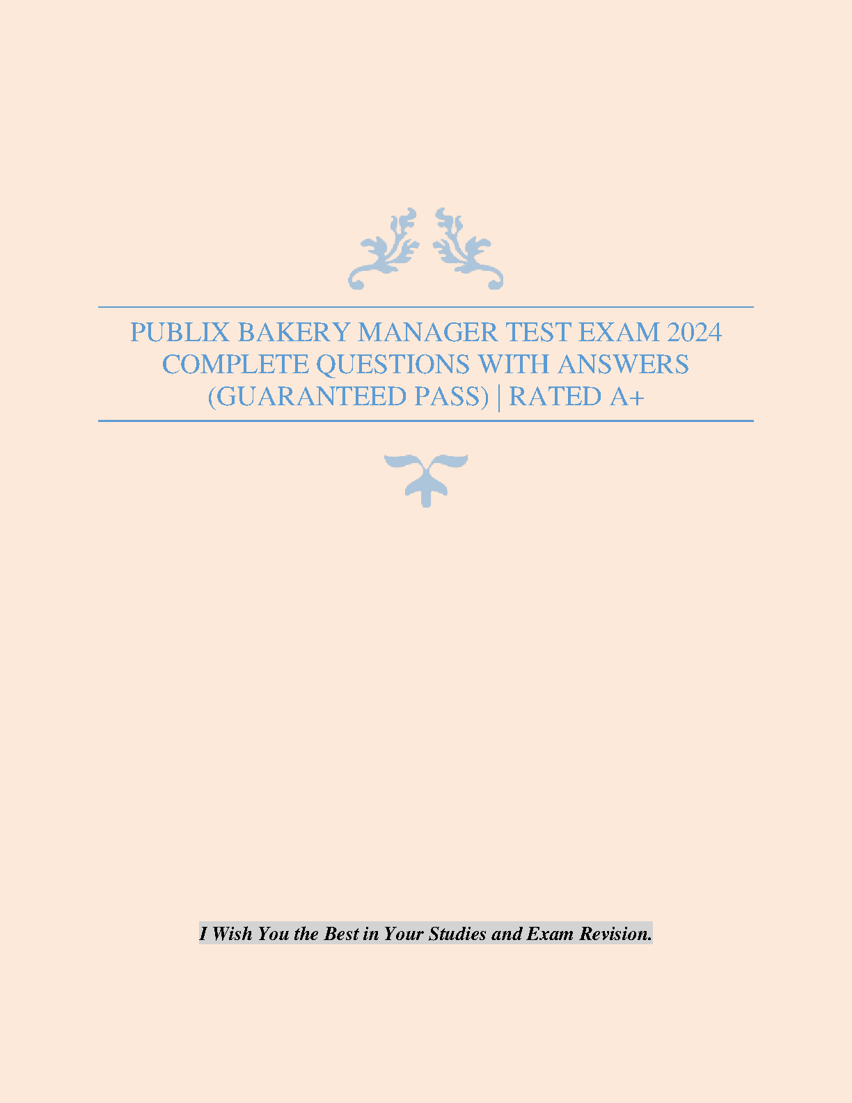 Ace your Publix Bakery Manager exam with this comprehensive 2024 test prep resource. Includes complete questions and answers, designed to help you pass on your first try and avoid resits. Get the A+ you deserve!