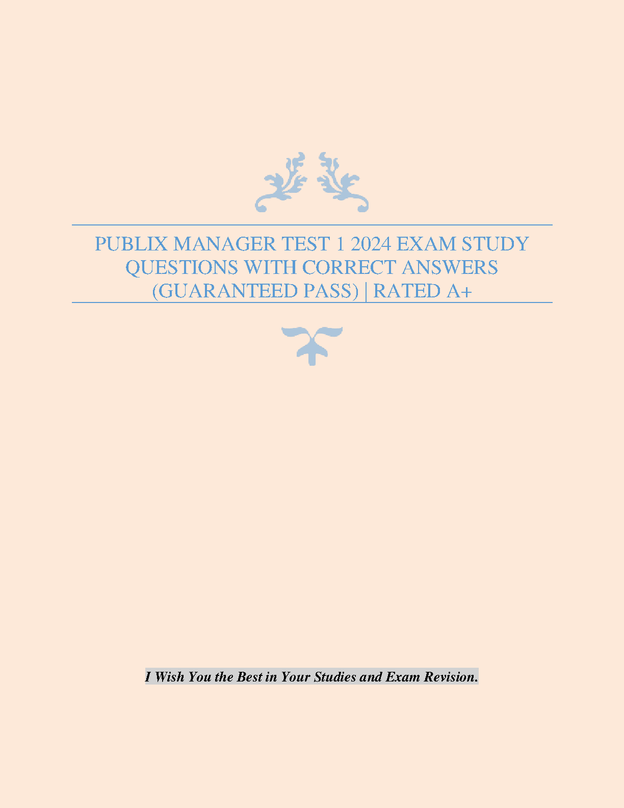 Publix Manager Test 1 2024 Exam Study Guide: Questions & Answers for Guaranteed Success