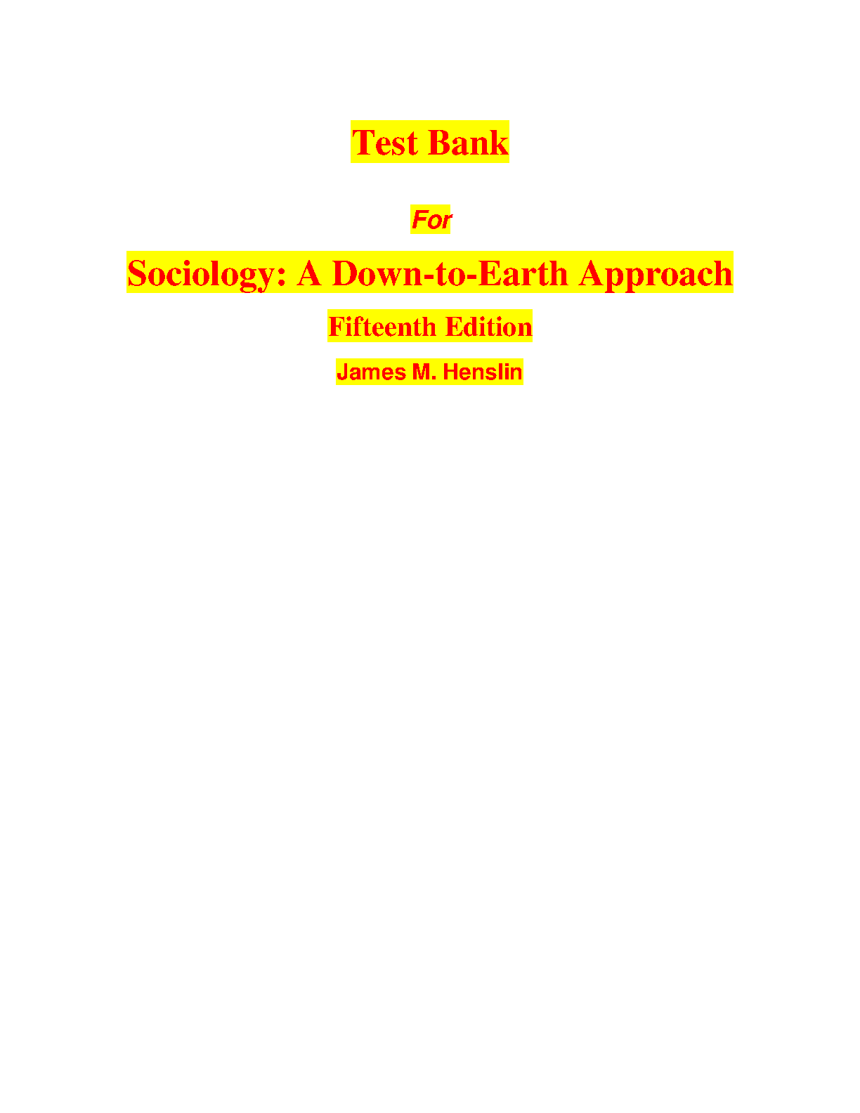 Sociology: A Down-to-Earth Approach, 15th Edition Test Bank - James M. Henslin