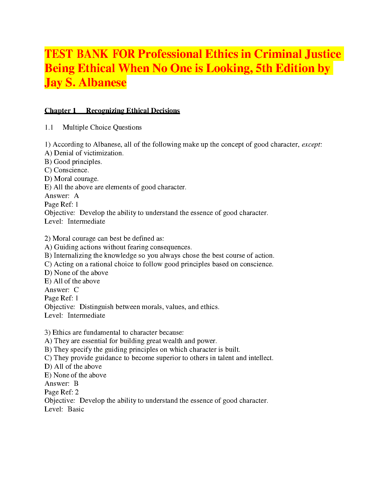 Ace your exams with this comprehensive test bank for Jay S. Albanese's Professional Ethics in Criminal Justice: Being Ethical When No One is Looking, 5th Editio...