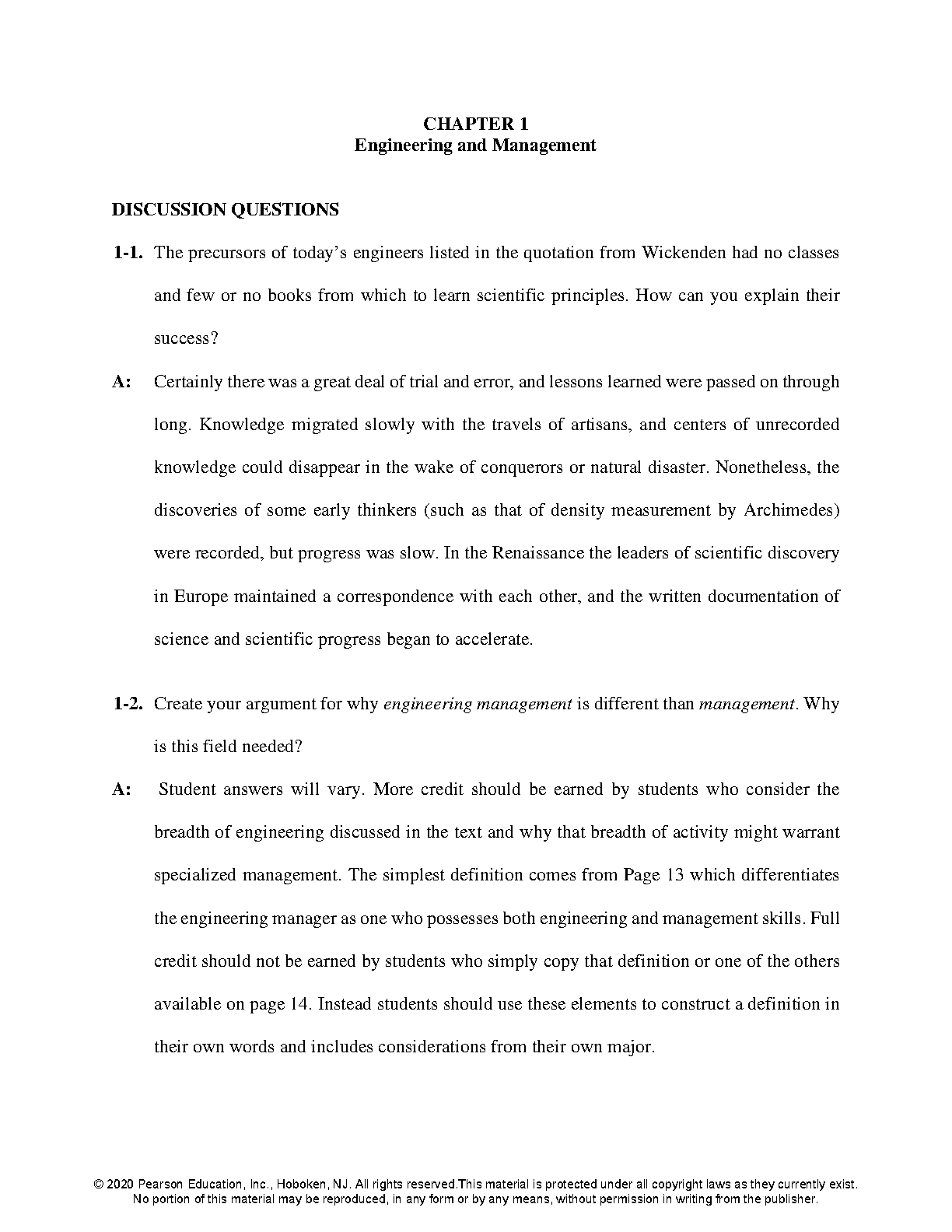 Engineering and Management, 1st Edition by Pearson Education - Discussion Questions and Answers