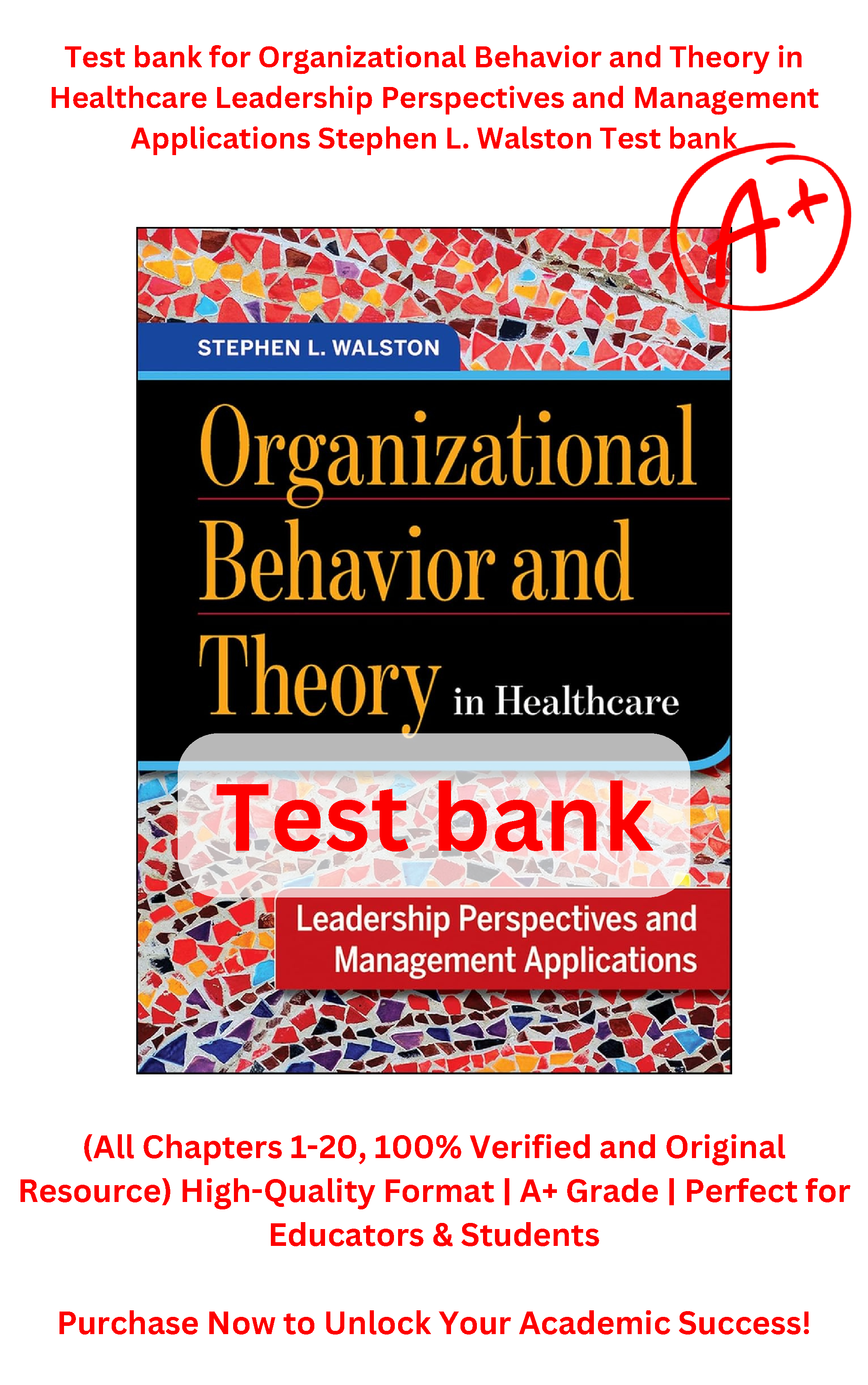 Ace your Organizational Behavior and Theory in Healthcare course with this comprehensive test bank by Stephen L. Walston. Covering all 20 chapters, this high-quality resource guarantees an A+ grade. Perfect for both students and educators.
