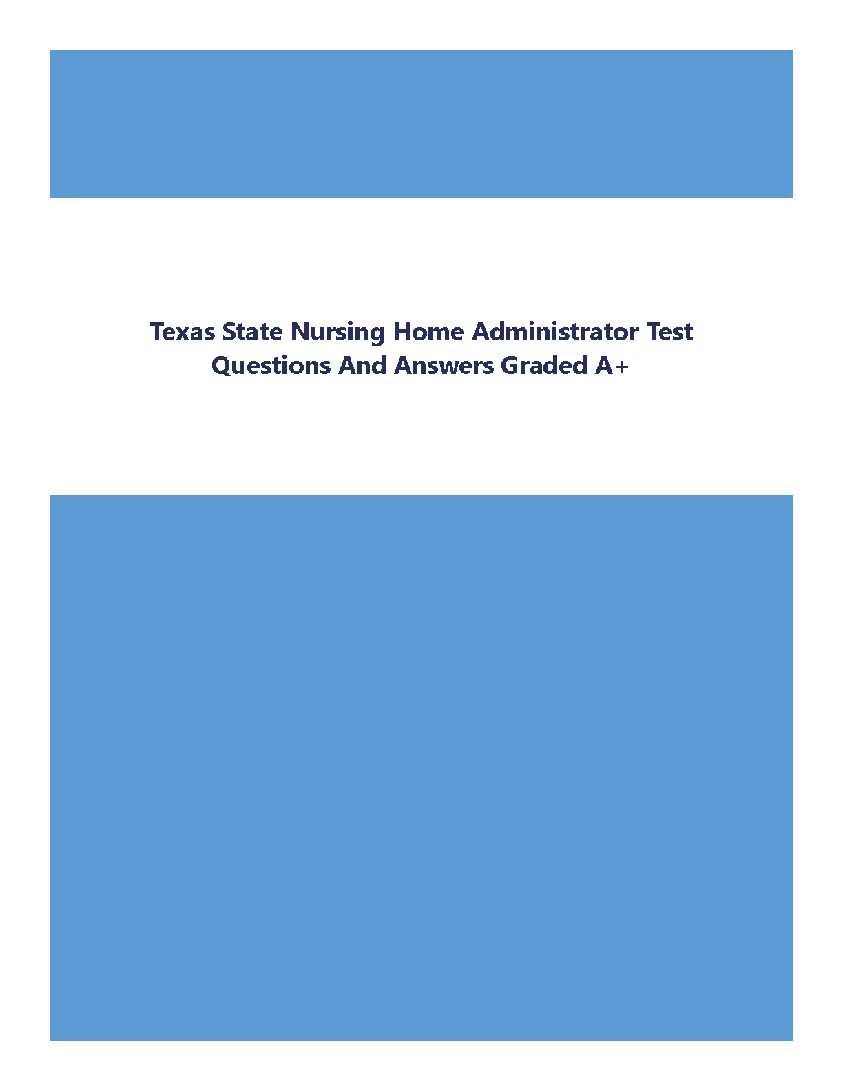 Prepare for the Texas State Nursing Home Administrator exam with confidence using this comprehensive question bank, designed to help you pass on your first attempt. This resource contains detailed questions and answers graded A+ and is updated for the 2024-2025 academic year. Ensure exam success and avoid resits.