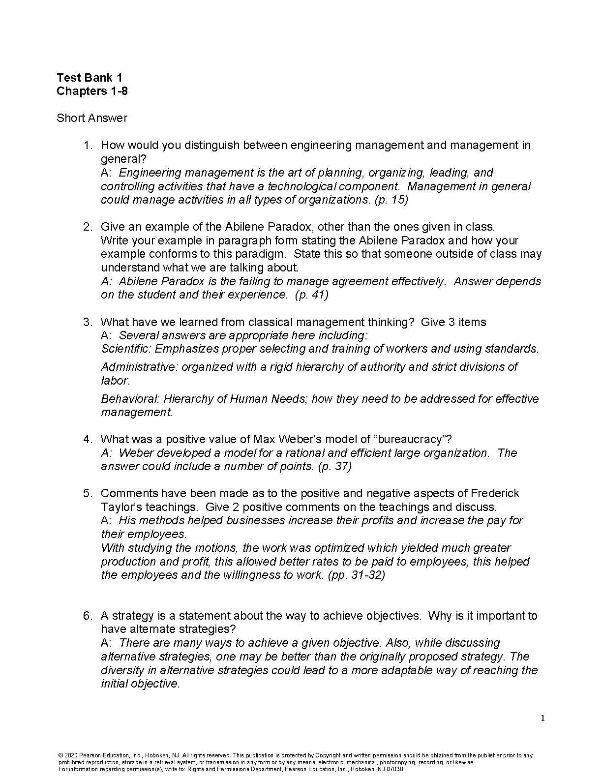 Ace your Engineering Management exams with this comprehensive Test Bank for the 1st Edition of Engineering Management: Principles and Practice. This resource provides in-depth explanations and answers, helping you avoid resits and succeed on your first attempt. Ideal for the 2024/2025 academic year.