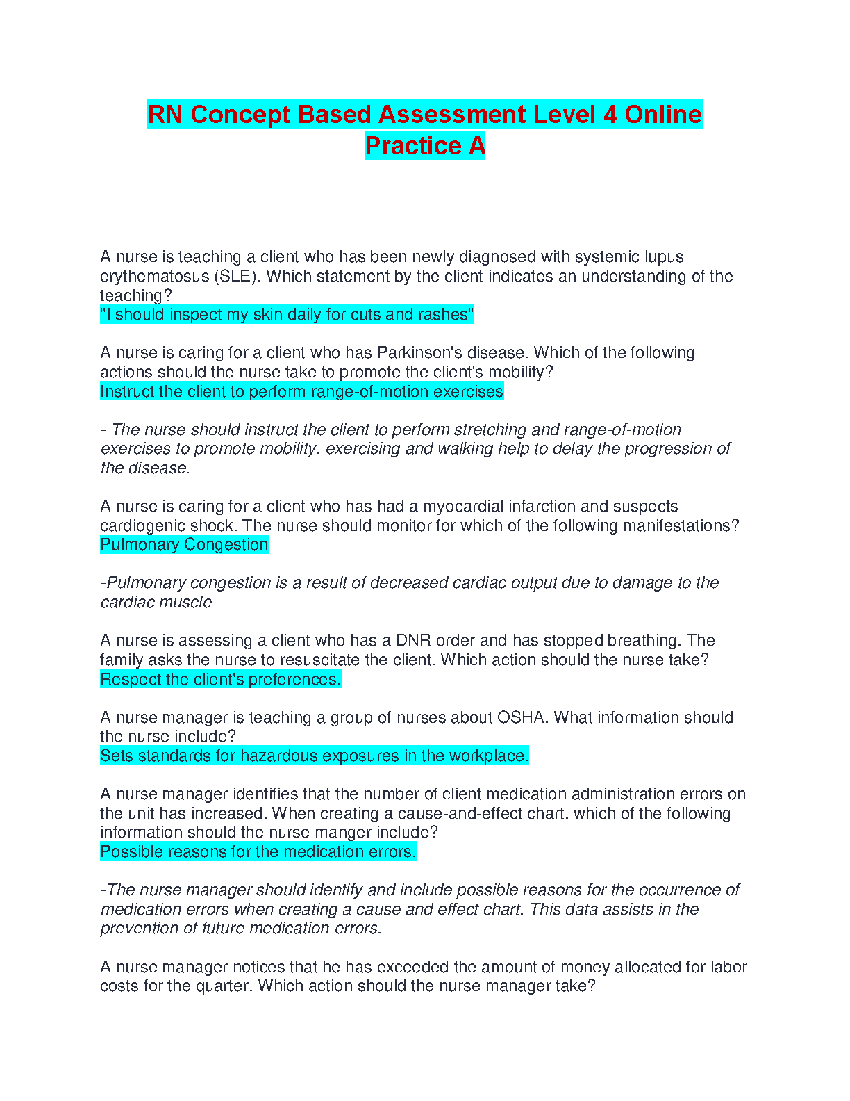 Ace your nursing exams with this comprehensive RN Concept Based Assessment Level 4 practice test. This resource covers key concepts to help you avoid resits and pass on your first attempt. Designed for the 2024/2025 academic year.