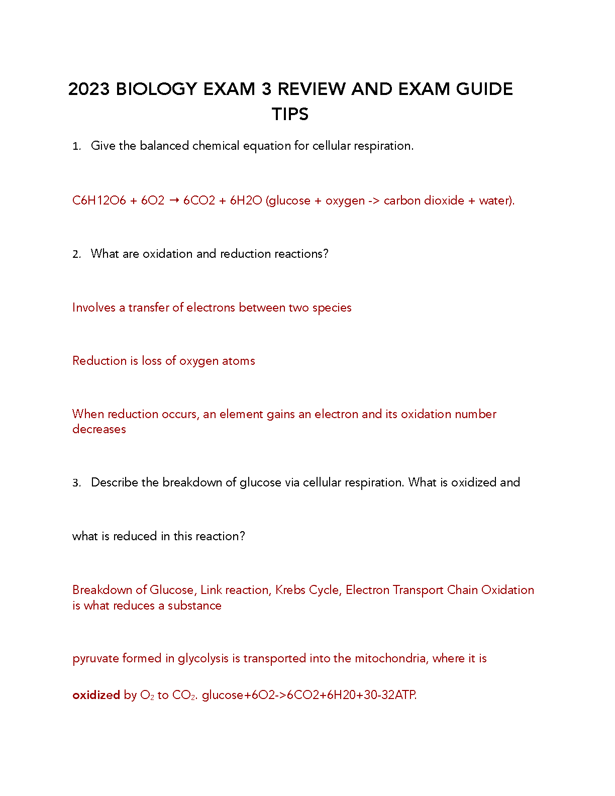 This 2023 Biology Exam 3 review guide provides essential tips and explanations to help you master cellular respiration, oxidation-reduction reactions, and the breakdown of glucose. Prepare effectively for your biology exam and achieve exam success on your first attempt. This resource offers a concise yet thorough overview of key concepts, ensuring a strong understanding for exam day.