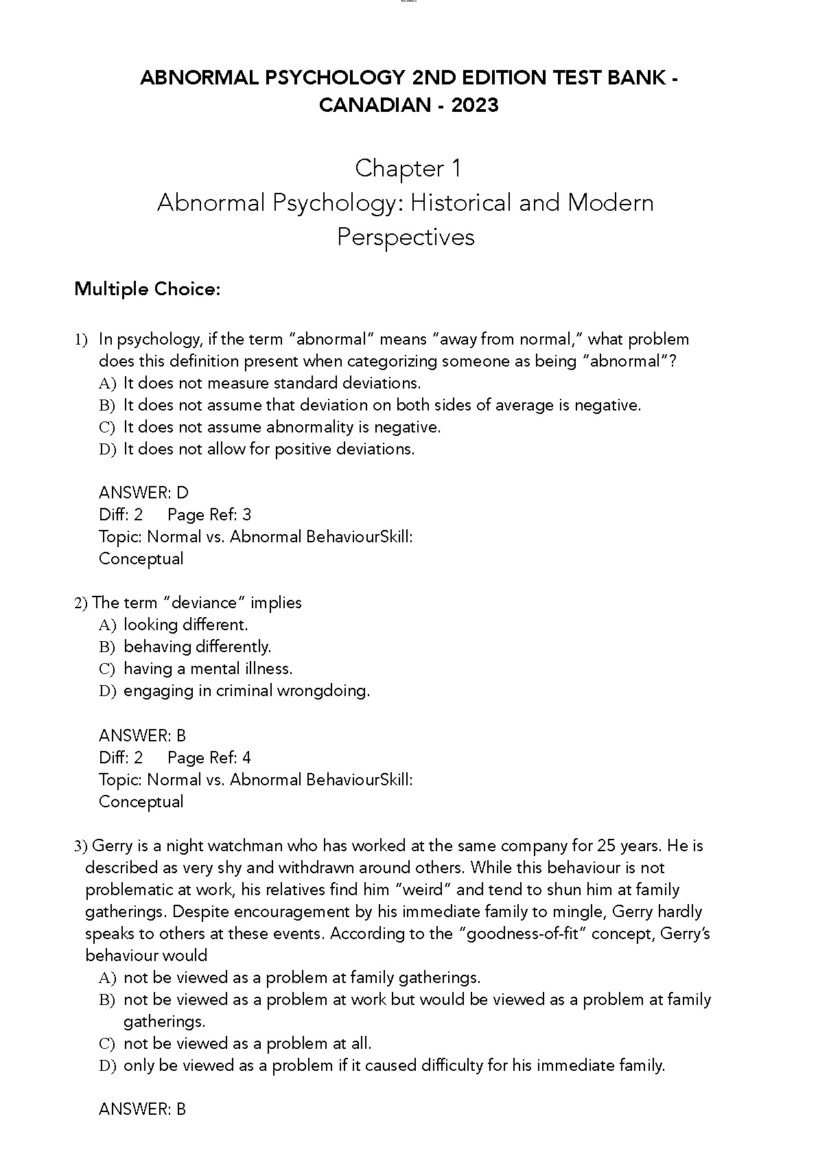Ace your Abnormal Psychology exams with this comprehensive 2nd edition Canadian test bank. This resource, designed for the 2024/2025 academic year, provides in-...