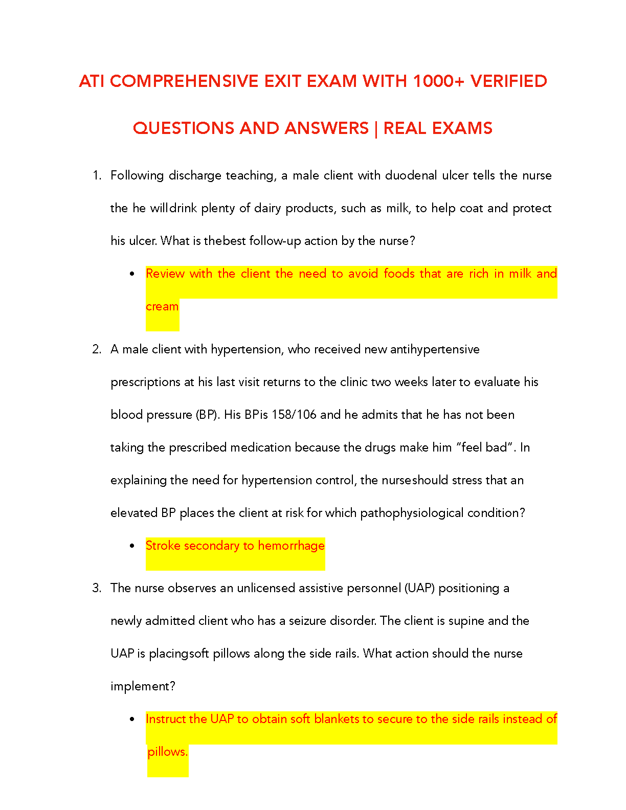 Ace your ATI Comprehensive Exit Exam on the first try with this latest 2024/2025 edition! This resource contains 1000+ verified questions and answers, covering real exam scenarios to ensure exam success and avoid resits. Prepare effectively and confidently for your nursing exam.