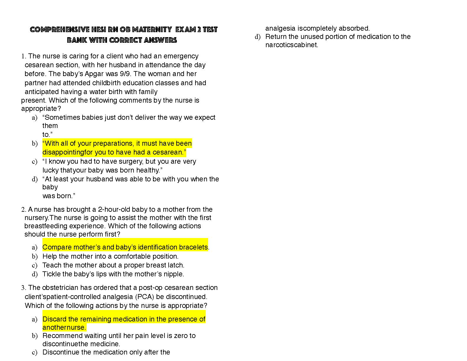 Comprehensive HESI RN OB Maternity Exam 2 Test Bank with Correct Answers: 2024-2025 Edition