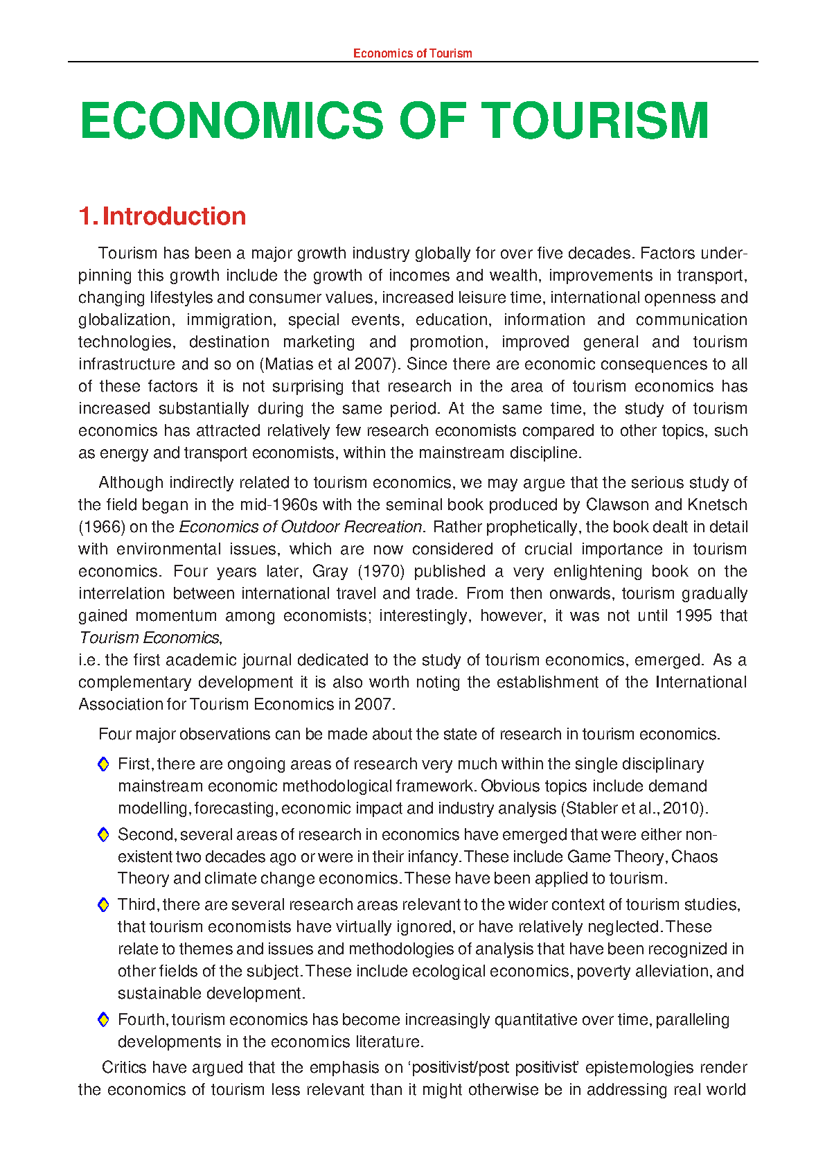 Economics of Tourism by Matias et al. (2007) Edition: A Comprehensive Guide for Students
