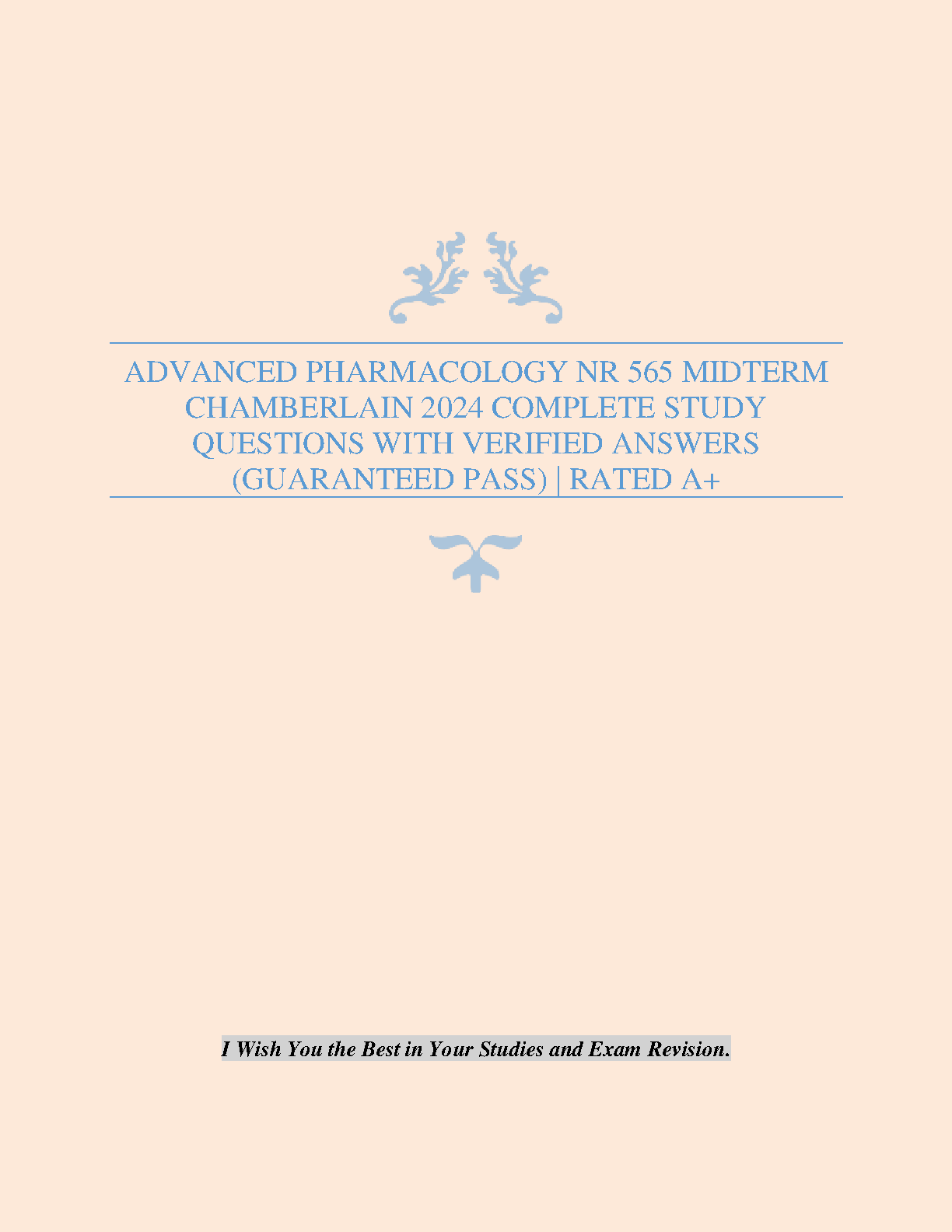 Chamberlain College of Nursing NR 565 Advanced Pharmacology Midterm Exam Study Guide 2024: Complete Questions & Verified Answers for Guaranteed A+