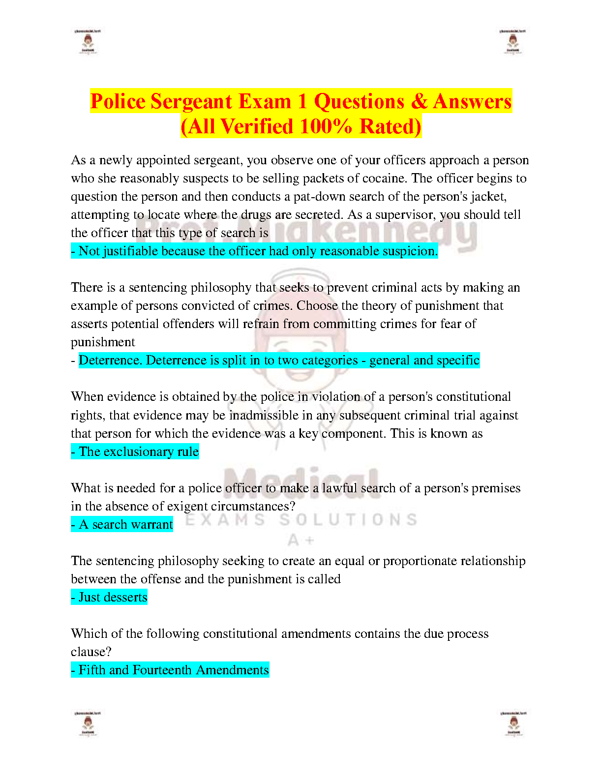 Police Sergeant Exam 1 Questions & Answers: A 2024/2025 Guide to Passing Exams on the First Attempt