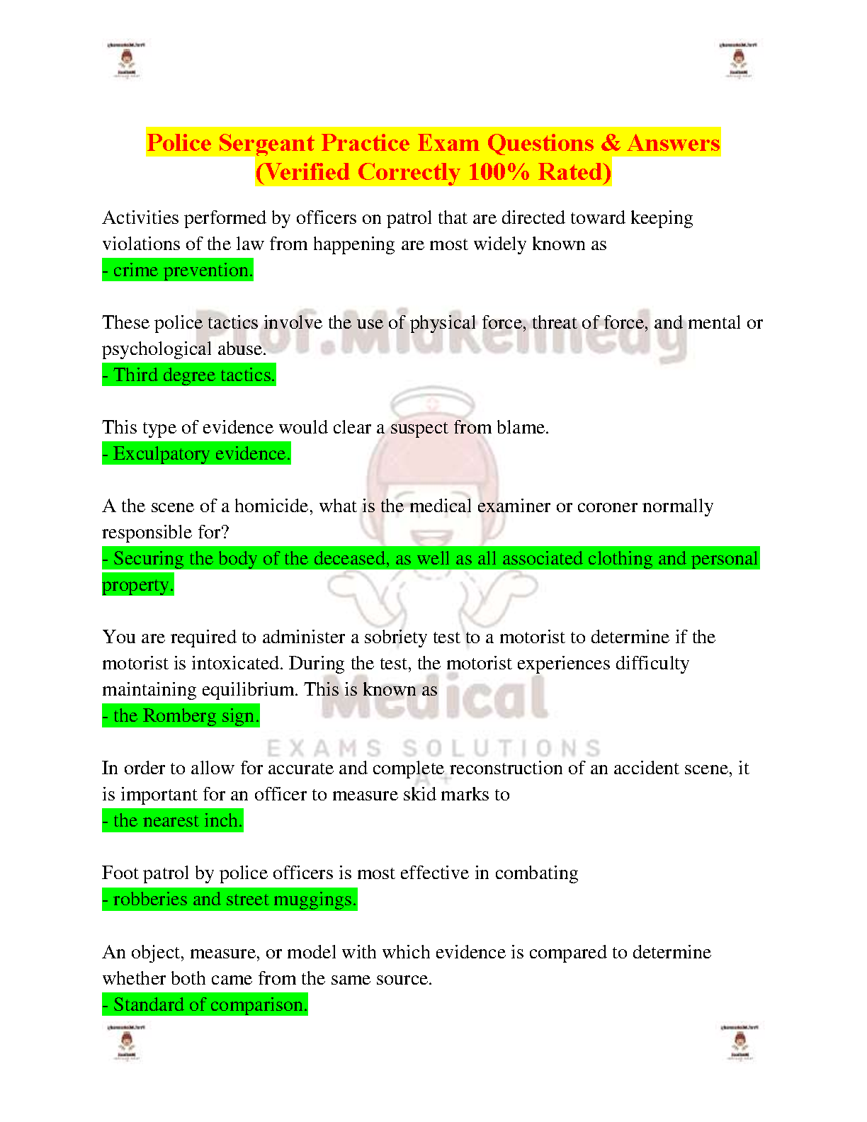 Pass your Police Sergeant exam on the first try with this comprehensive practice exam featuring verified questions and answers. This resource is designed to hel...