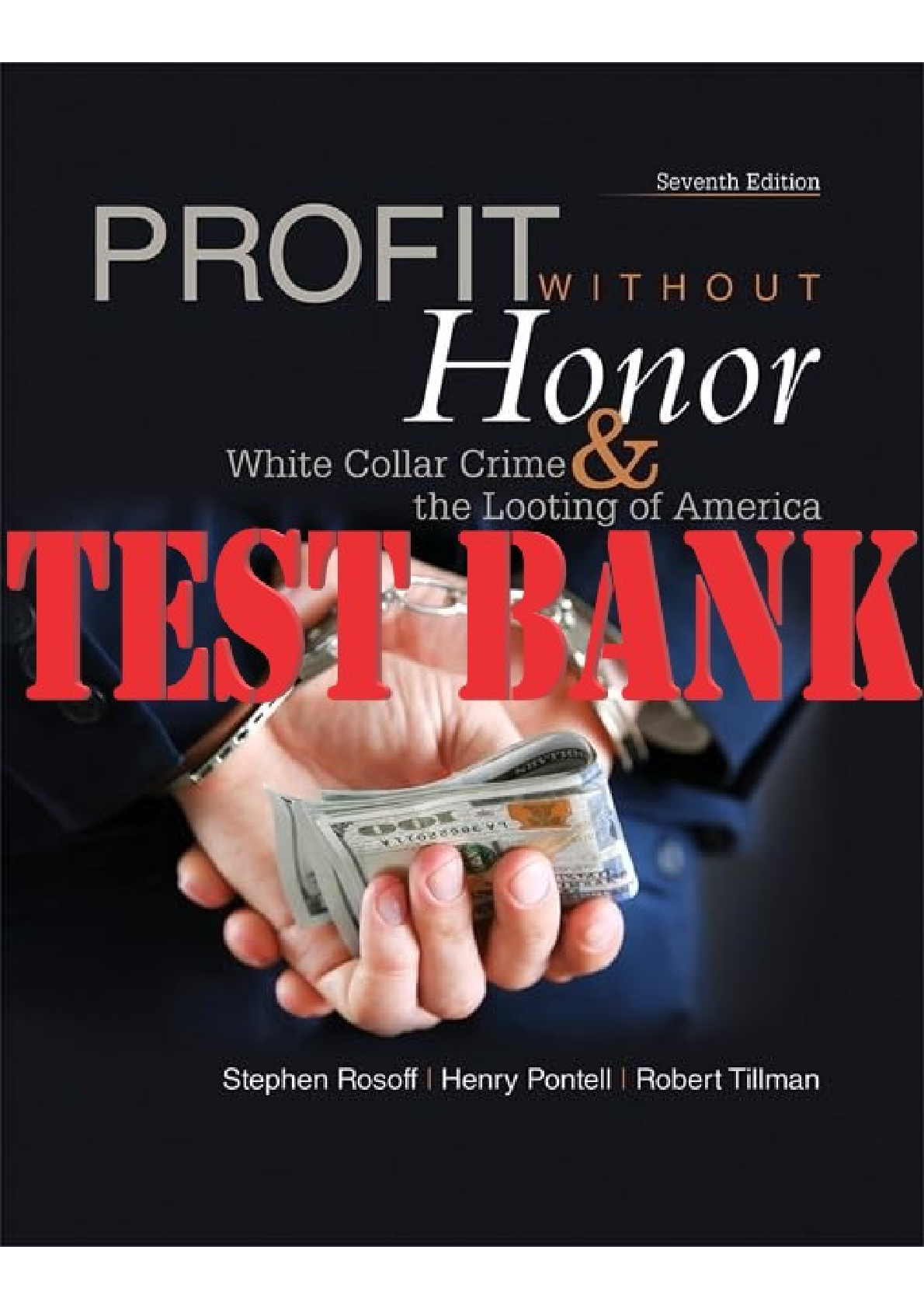 Profit Without Honor: White Collar Crime & the Looting of America, Seventh Edition Test Bank - Stephen Rosoff, Henry Pontell, Robert Tillman
