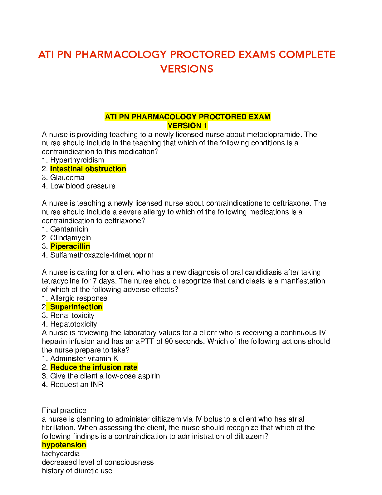 ATI PN Pharmacology Proctored Exams Complete Versions: 2024-2025 Edition - Ace Your Exams!