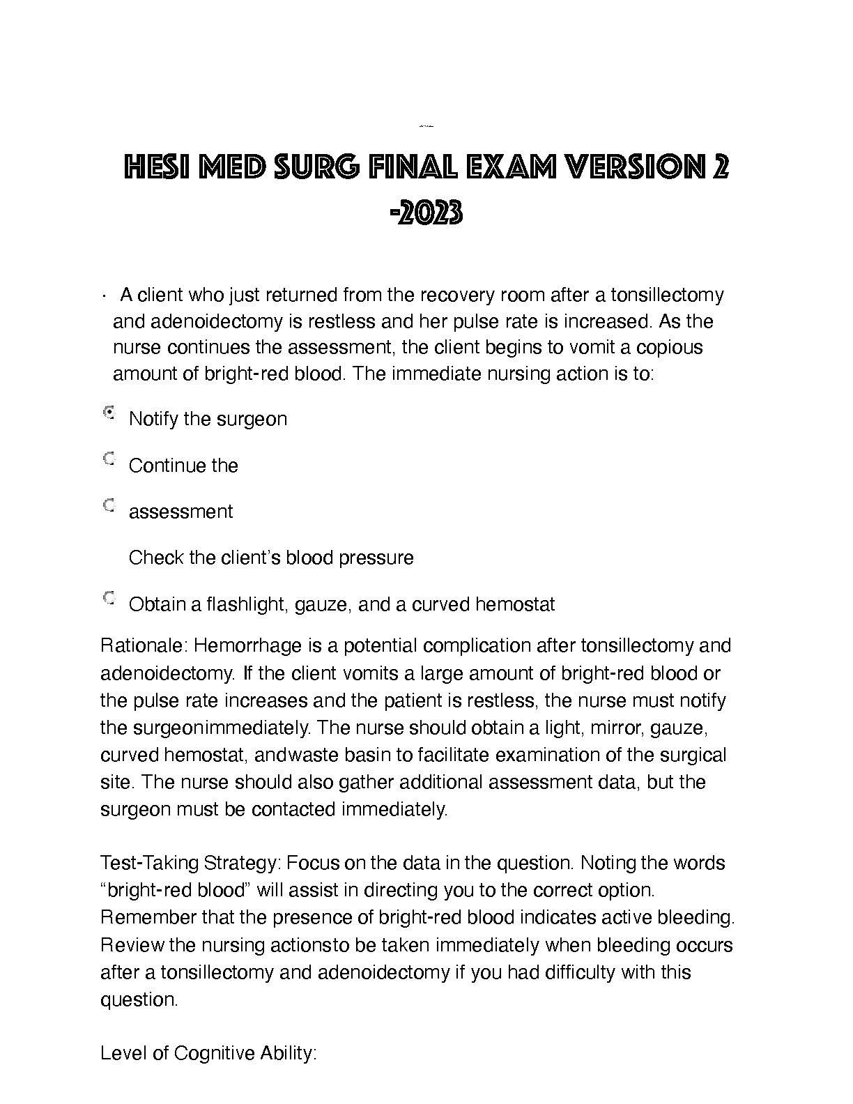 HESI Med Surg Final Exam Version 2 2023: Ace Your Exam with This Comprehensive Guide