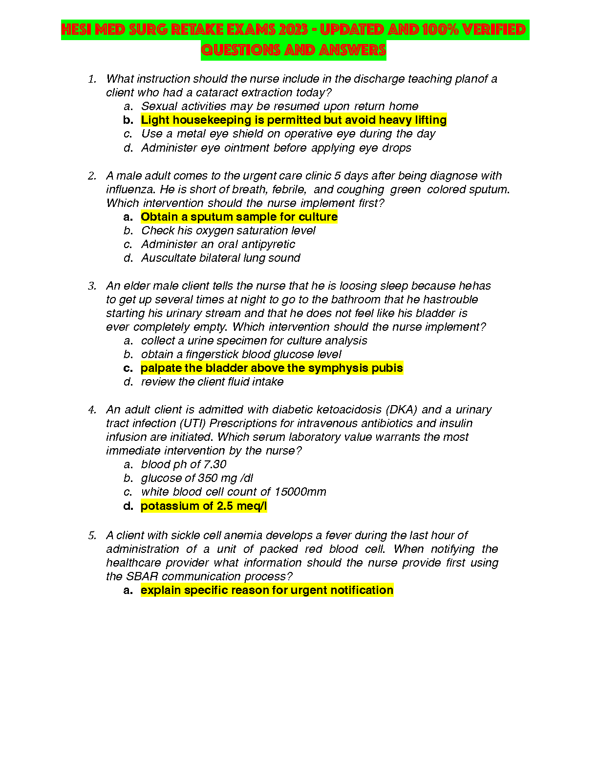 HESI Med-Surg Retake Exams 2023: Updated Questions & Answers - Pass Your Exams on the First Attempt