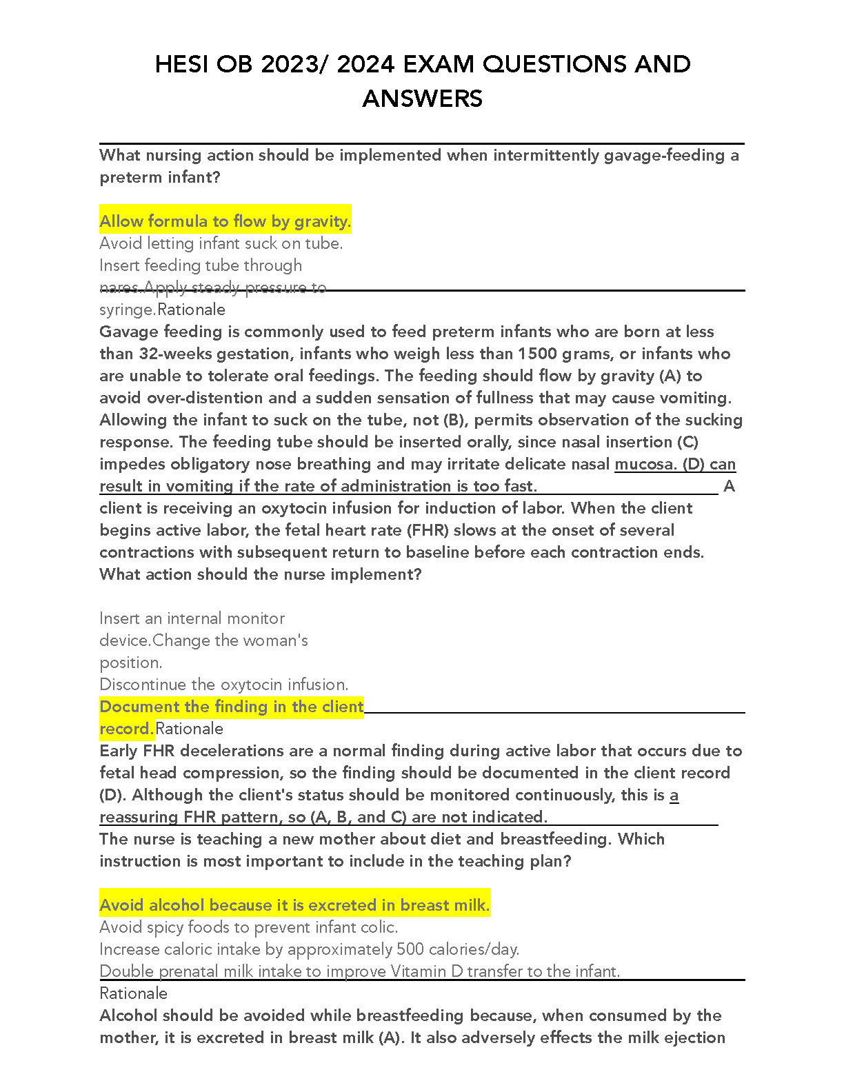 HESI OB 2023/2024 Exam Questions and Answers: Ace Your Exam with This Comprehensive Guide