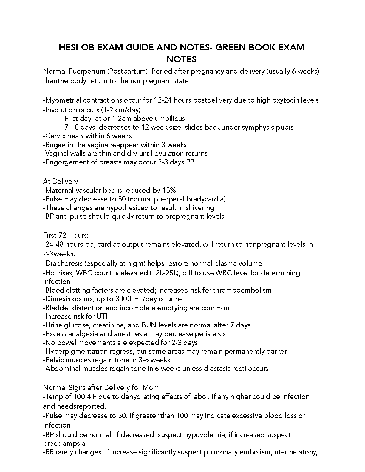 Ace your HESI OB exam on the first try with this comprehensive study guide. This detailed resource covers normal puerperium, delivery, and the first 72 hours po...