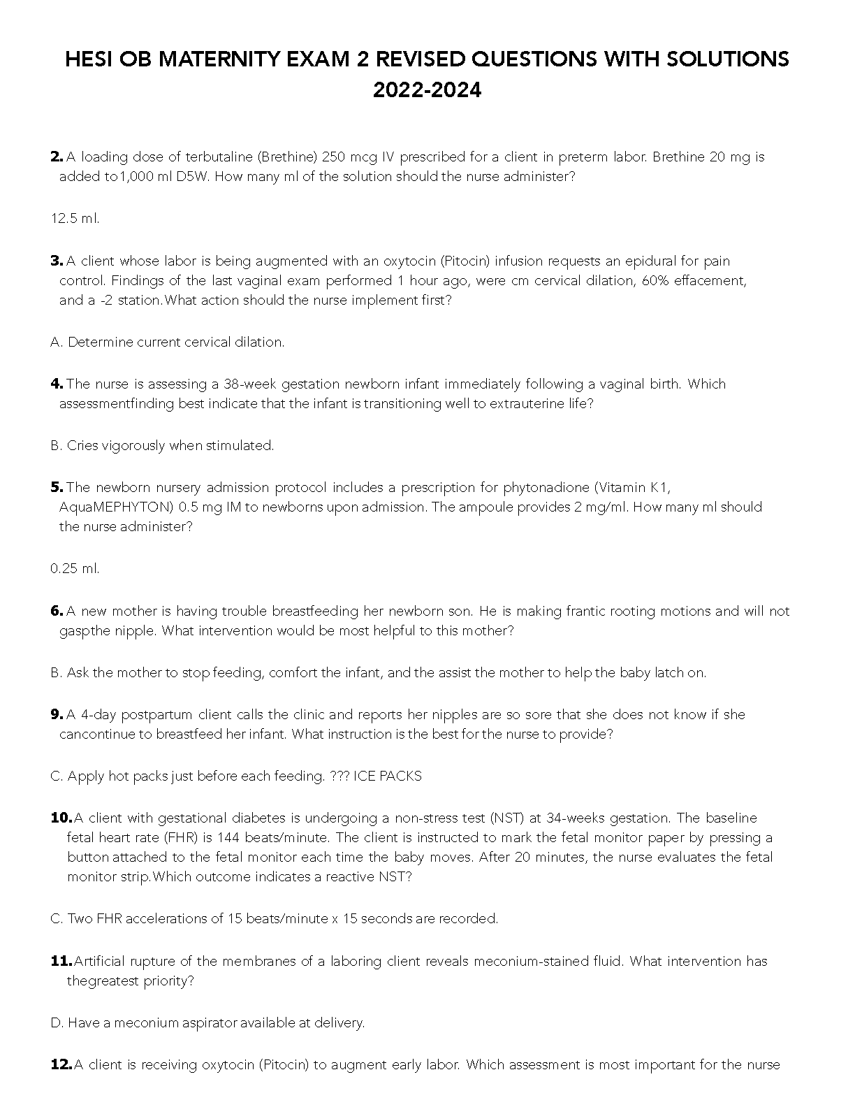 Prepare for your HESI OB Maternity Exam 2 with this comprehensive set of revised questions and solutions. This updated 2022-2024 edition covers key concepts to...