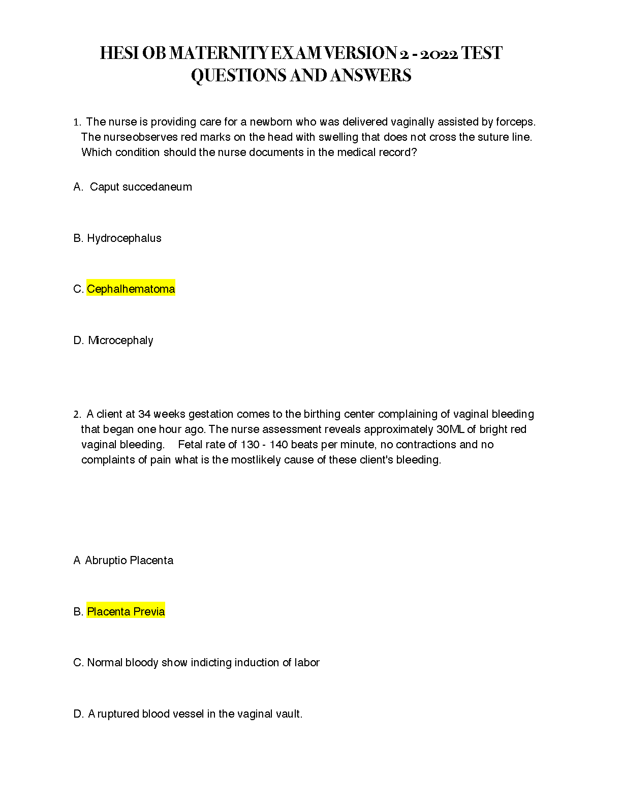 HESI OB Maternity Exam Version 2 - 2022 Test Questions and Answers: Ace Your Exam with this Comprehensive Study Guide