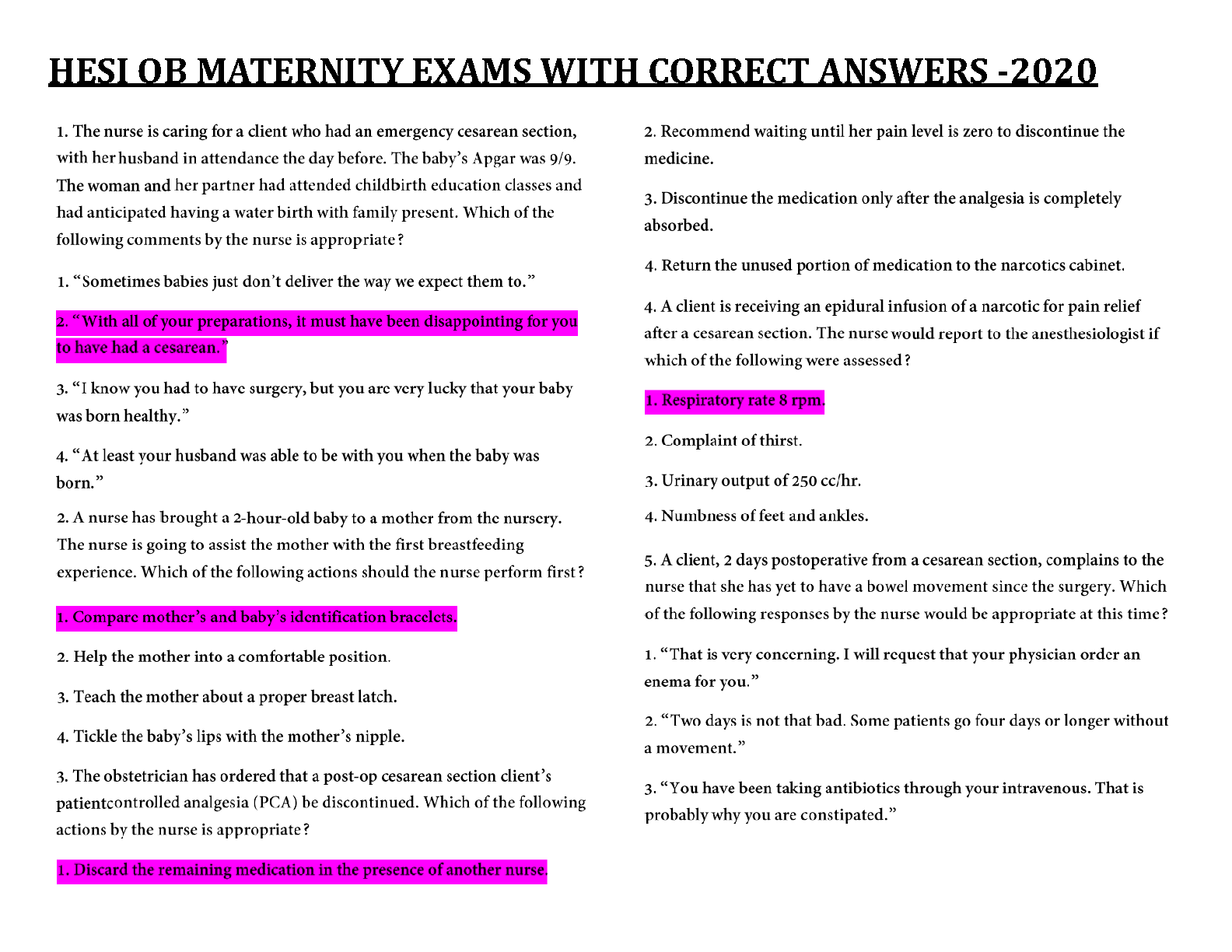 HESI OB Maternity Exams with Correct Answers - 2020 Edition by [Author Names]