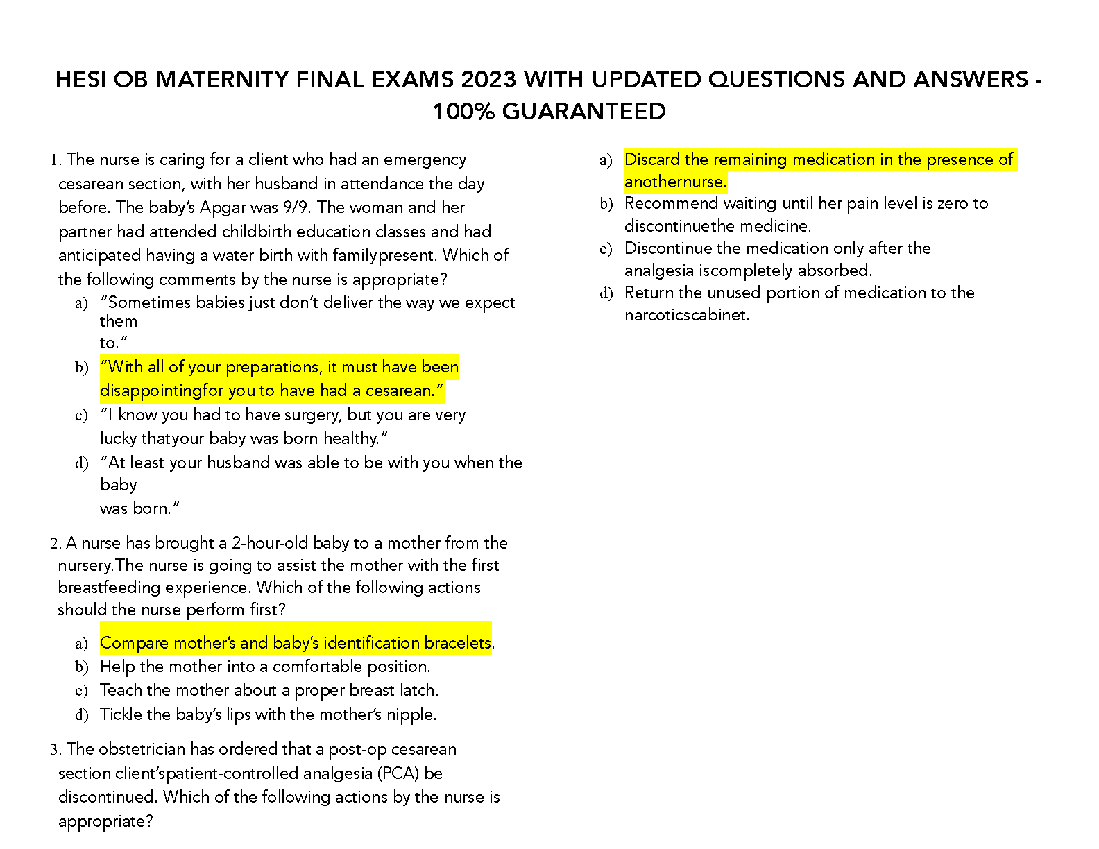 HESI OB Maternity Final Exams 2023 with Updated Questions and Answers - 100% Guaranteed