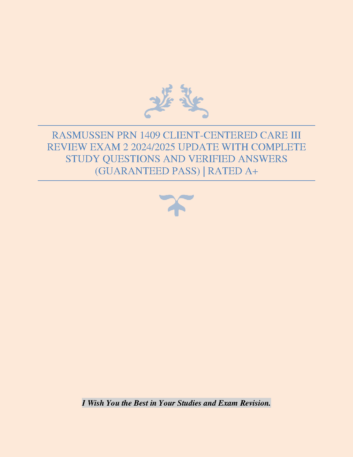 Rasmussen PRN 1409 Client-Centered Care III Review Exam 2 2024/2025 Update: Guaranteed A+ Prep for First-Time Exam Success