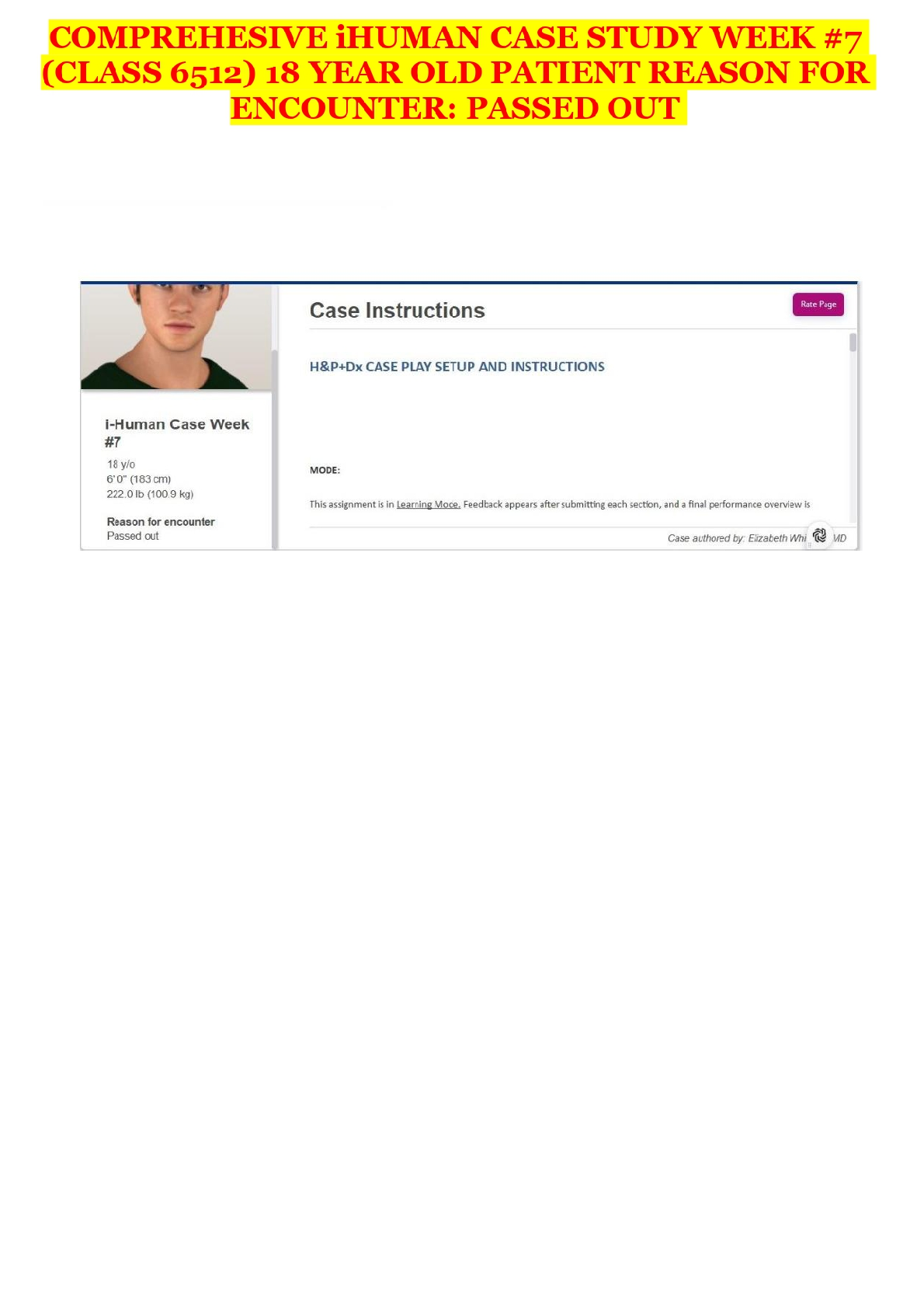 iHuman Case Study Week #7: 18-Year-Old Patient Passed Out - Comprehensive Guide for Class 6512 by Elizabeth Whi, MD